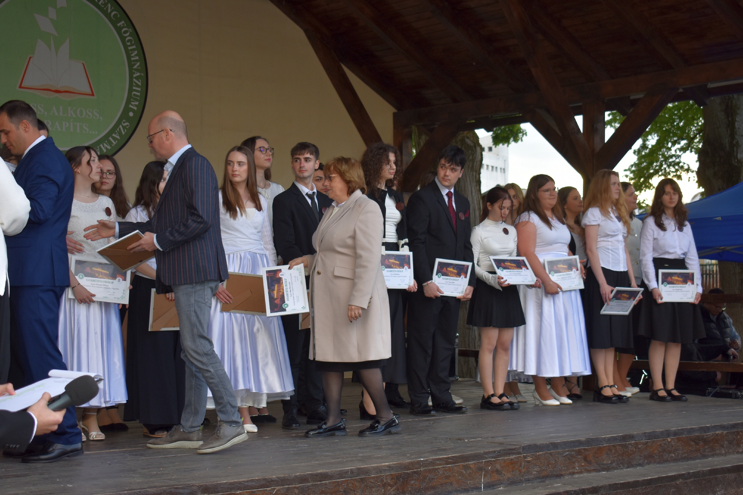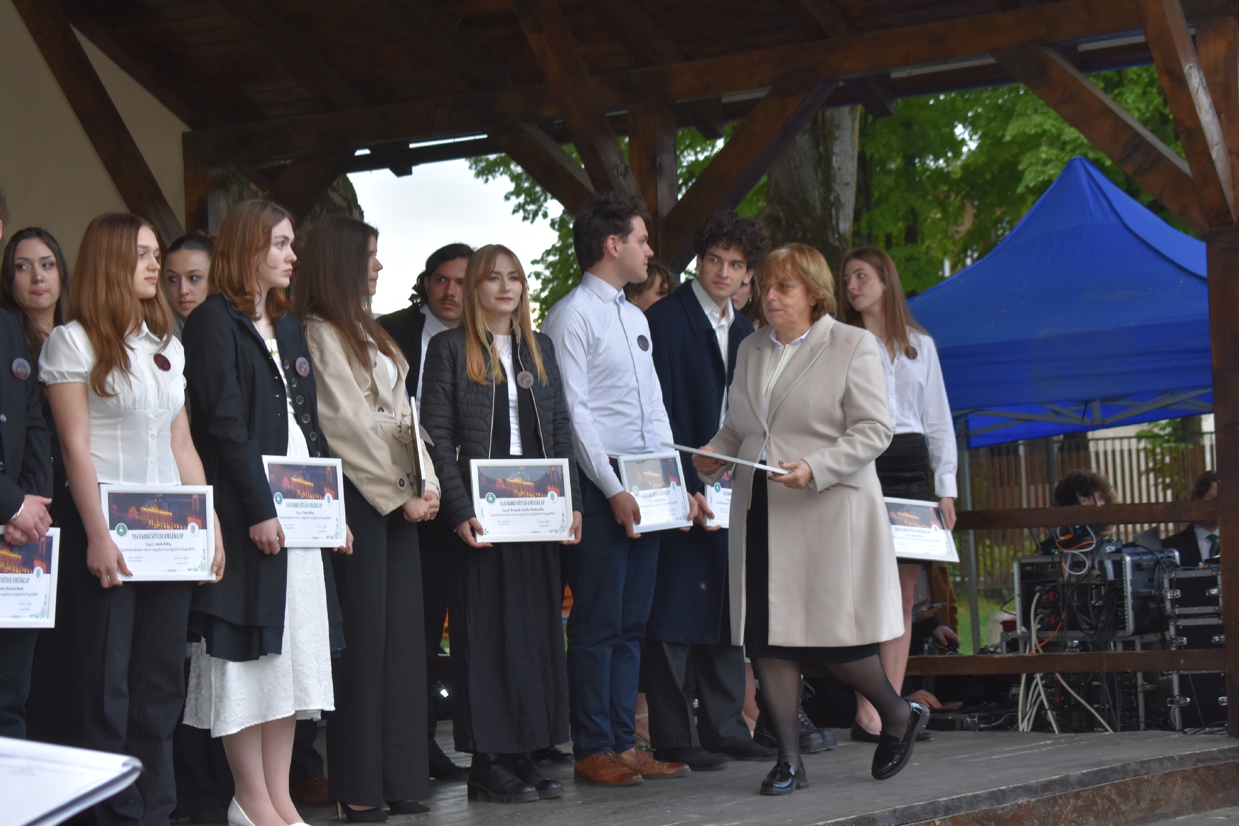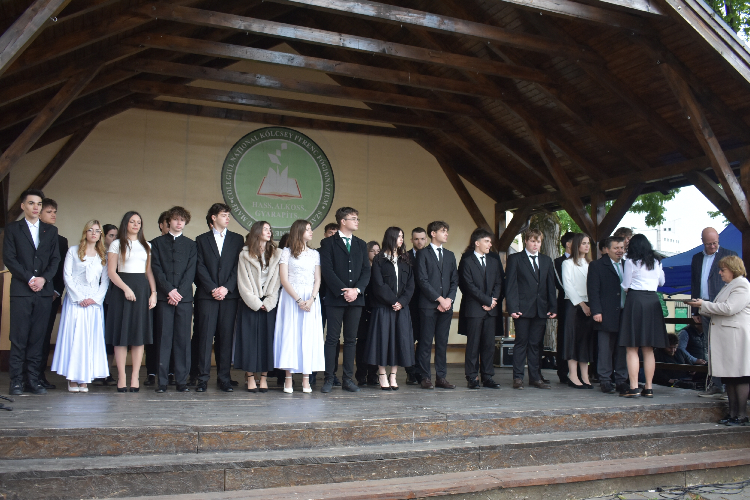 „Ünnepre gyűltünk ma össze, ünnepelni végzőseinket, akiknek eddigi életútja lassan célegyenesbe fordul, hiszen tizenhárom év munkája, mindennapjai, kisebb és nagyobb történései nyernek értelmet az elkövetkező két hónapban” — köszöntötte a főgimnázium nagykorúsítási ünnepségén az udvart megtöltő szülőket, nagyszülőket, barátokat, s természetesen a maturandusokat Pataki Enikő igazgatónő.