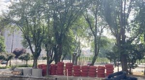 Ha itt végeztek a park szélétől a falig, akkor átköltöztetik a hálókerítést a Pannónia szálló elé és ott végzik el ugyanezt a munkát — adott körülményekhez adaptálják majd nem csak a gyalogos, hanem az autós és biciklis forgalmat is.