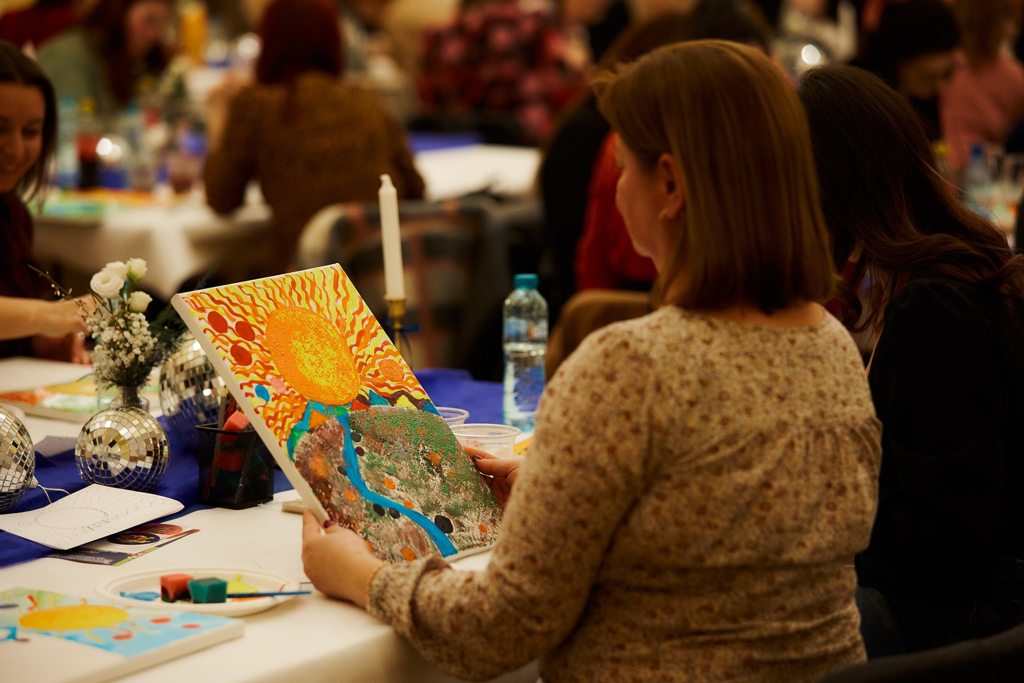 Jó pár éve indította útjára a nemzetközi nőnap alkalmából a G. M. Zamfirescu Kulturális Központ a Ladies Creative Day–t — ezt a kreativitással, eleganciával és nőiességgel átszőtt, s mindig nagy érdeklődésnek örvendő eseményt. Nem volt ez másként szombaton délután sem, amikor a hagyományos helyszínen, az Iparosotthon báltermében — ahol idén a női identitás, a nő szerepe és ragyogása kerül a középpontba — 100 hölgy ült le az asztalok mellé, hogy az élményfestés keretében a színek és formák segítségével megalkossák saját festményüket.