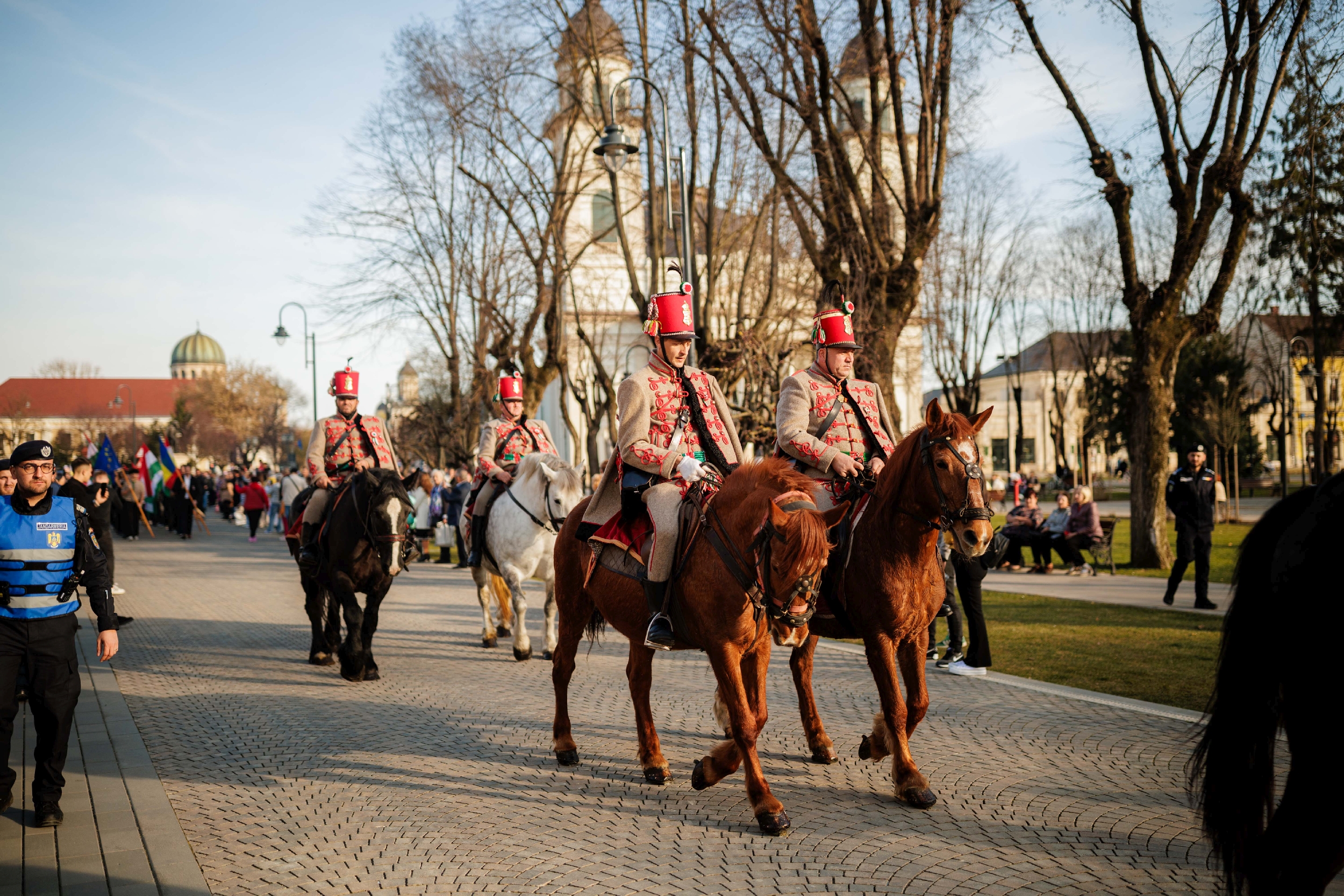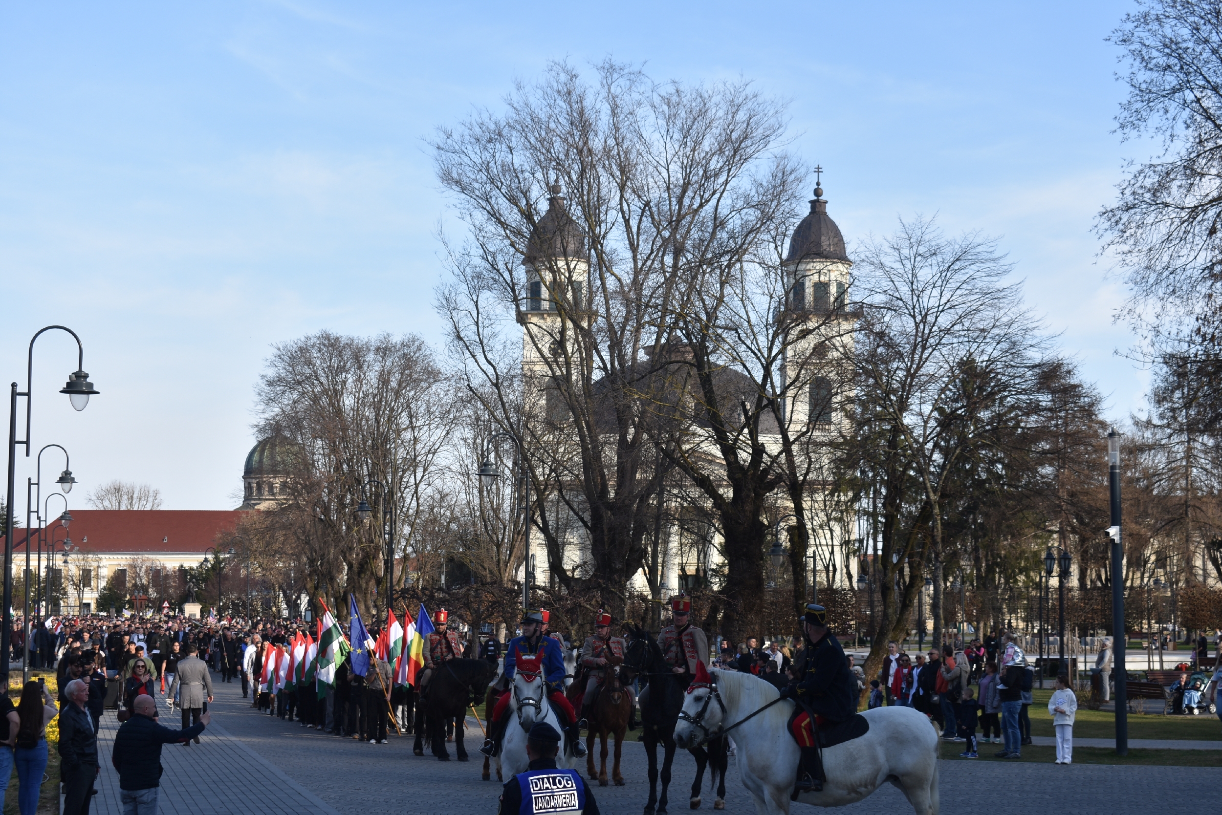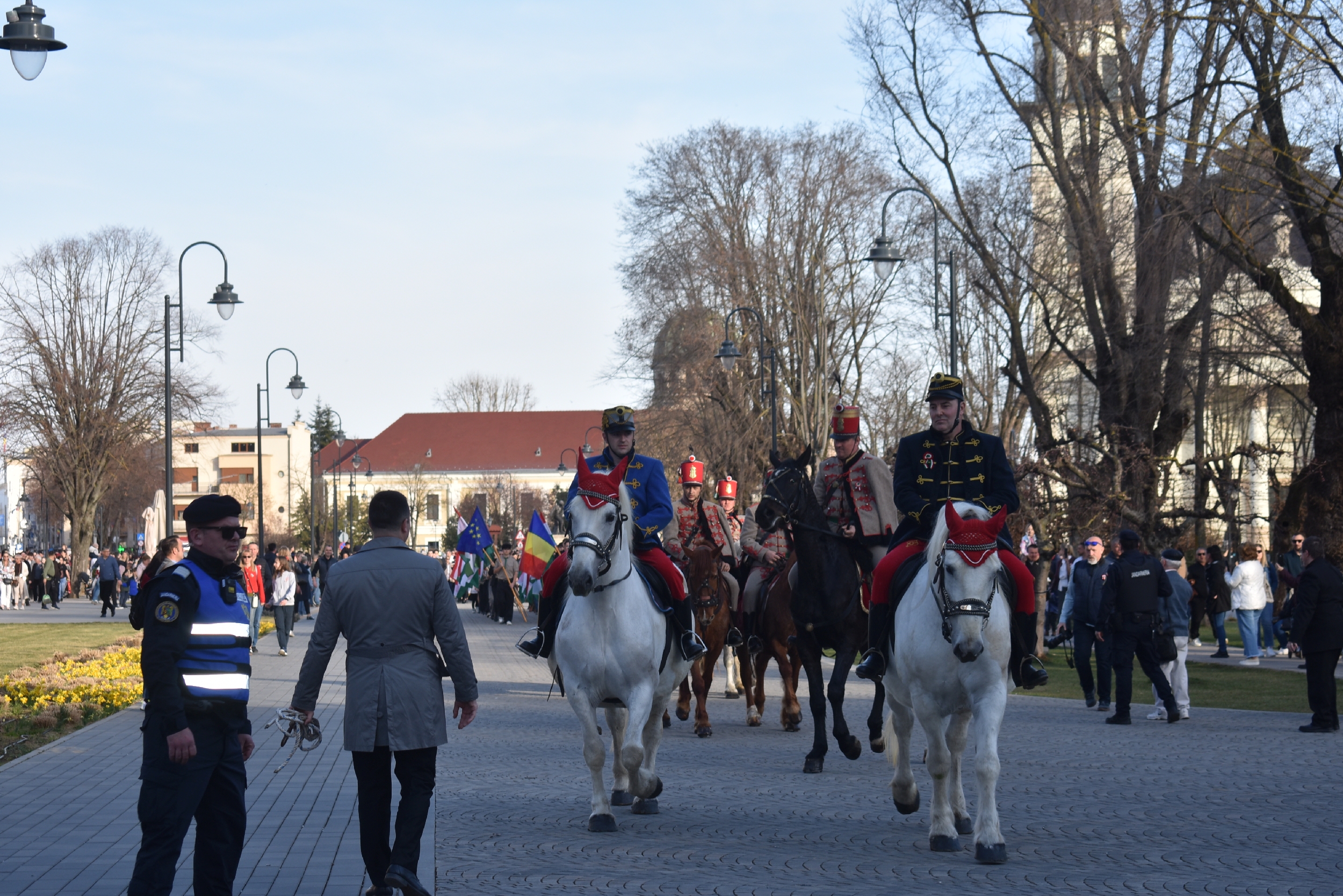 Ragyogó napsütésben ünnepelt idén Szatmárnémeti — s talán ennek is köszönhető, hogy a megszokottnál is többen gyülekeztek az Ormos-ház körül, ahol a szilágyballai és koltói huszárok lovai már táncolva várták, hogy a kaplonyi fúvószenekar diktálta ritmusra elindulhassanak.