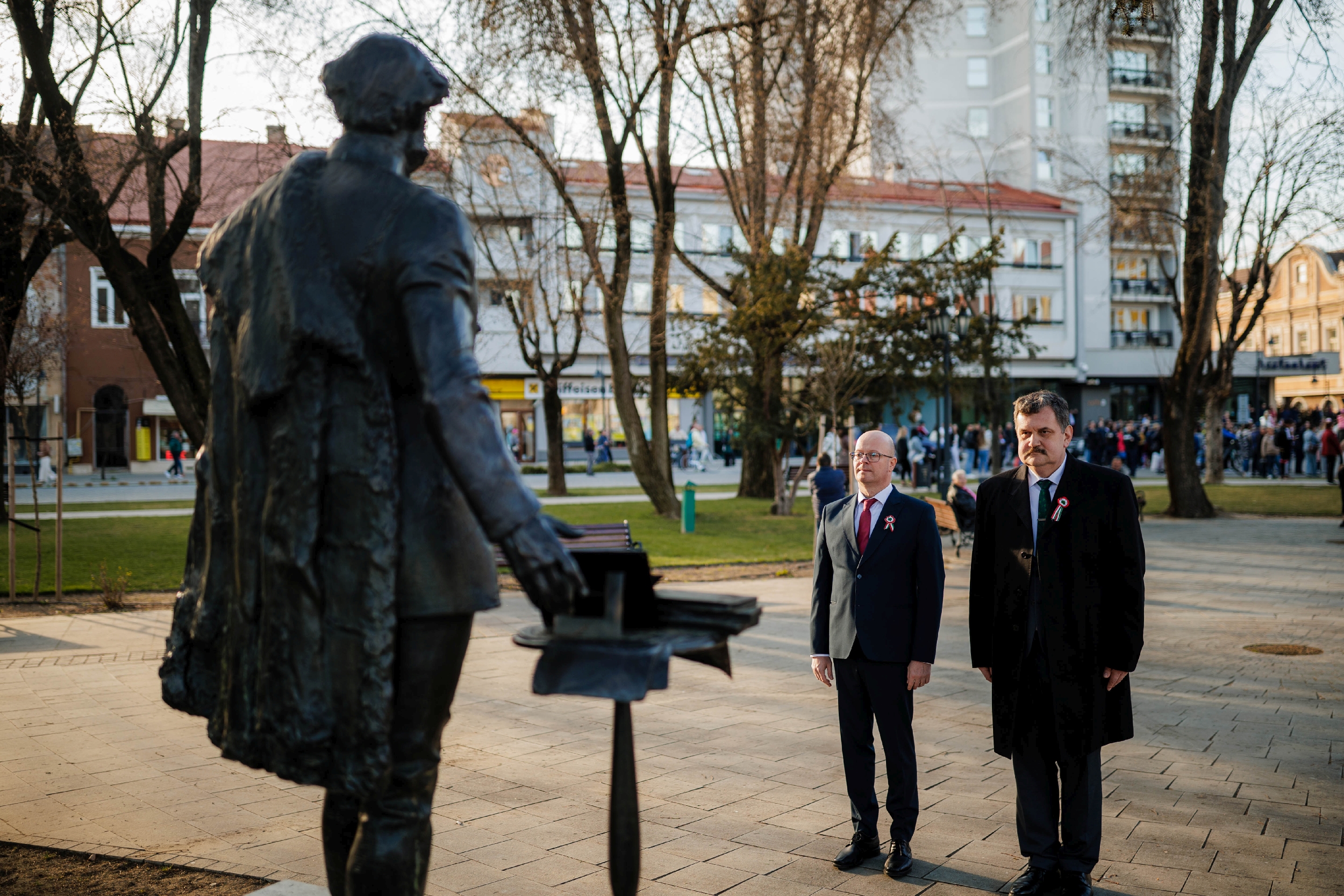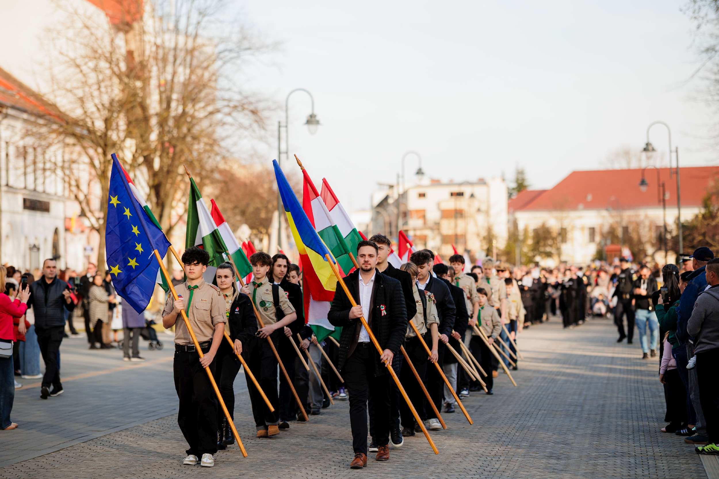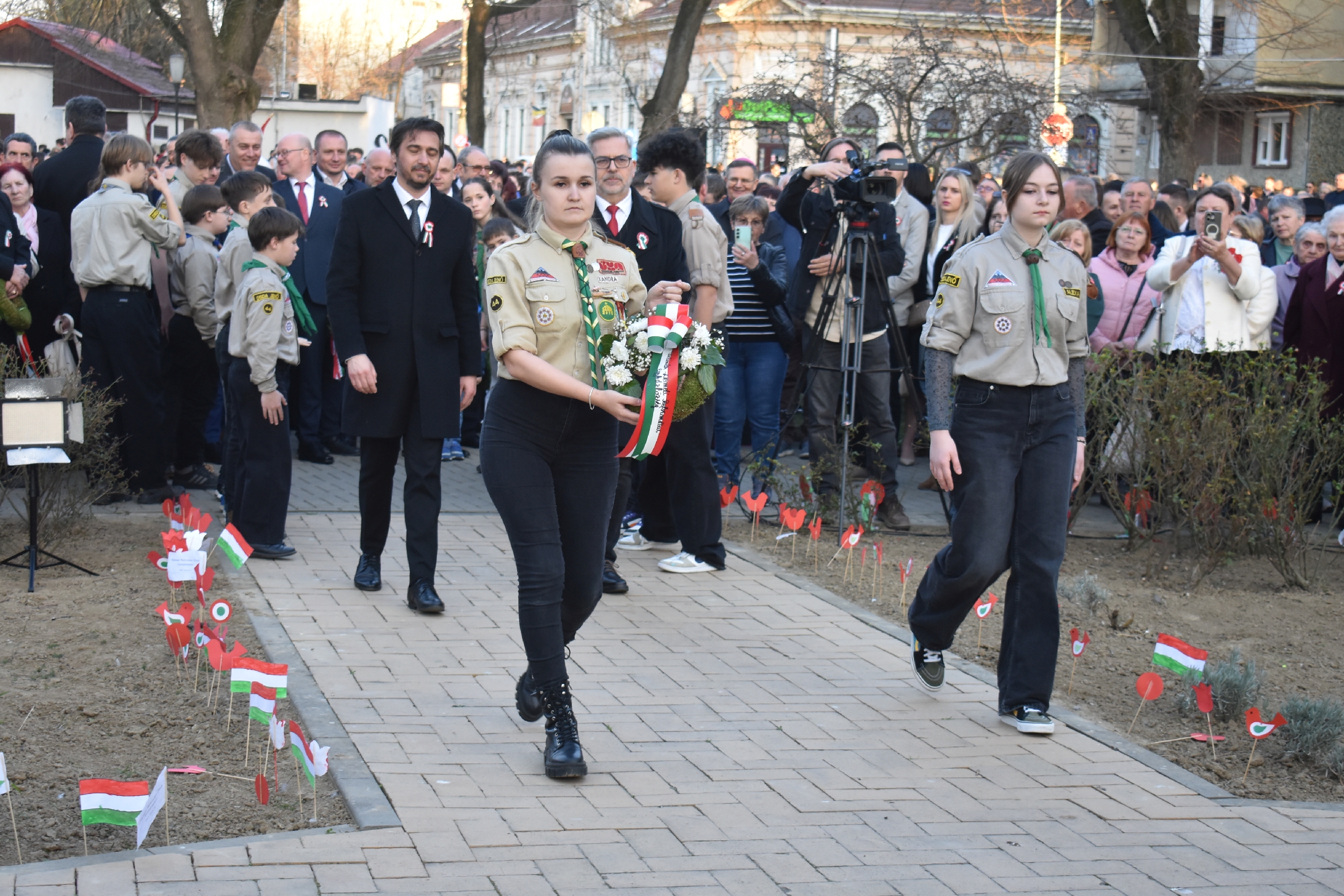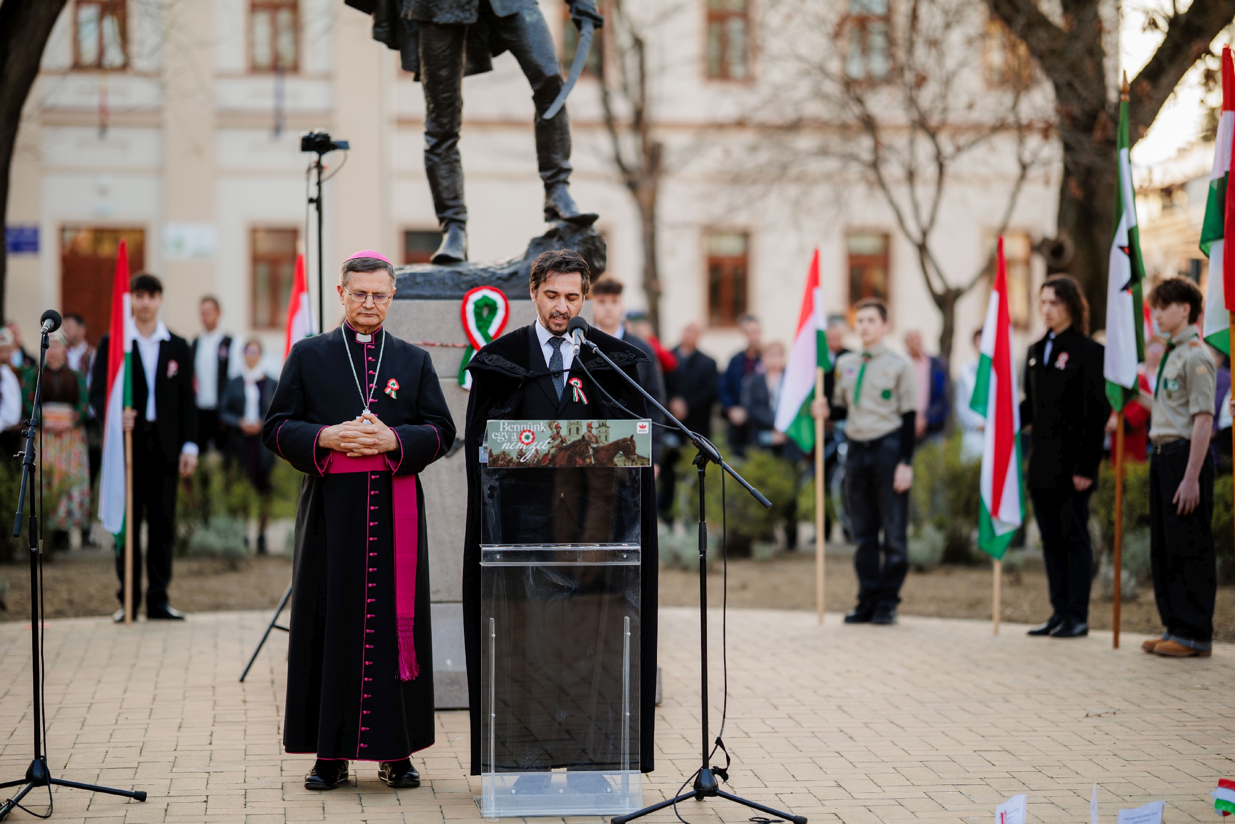 Ünnepi beszédében Pataki Csaba a megyei RMDSZ és a megyei tanács elnöke kiemelte: 1848 tavaszán elődeink olyan közös célokat fogalmaztak meg, amelyek mögé a társadalom legkülönbözőbb rétegei is fel tudtak sorakozni. A tizenkét pont nemcsak politikai követelés volt, hanem egy közös akarat kikiáltása; olyan akaraté, amely túlmutatott a vitákon, a különböző érdekeken, és amely egy egész nemzetet mozdított meg és állított csatasorba. Pedig akkor sem volt minden egyszerű. A reformkor vitákkal teli időszak volt, nézetkülönbségekkel és különféle érdekek állandó ütköztetésével. Mégis eljött az a pillanat, amikor mindenki felismerte: vannak ügyek, amelyek fontosabbak minden különbségnél és március 15-én ezért tudott megszületni az a történelmi egység, amely a modern magyar nemzet megszületésének alapját jelentette.