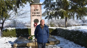 Hamisítatlan téli táj fogadta szombaton délelőtt az Ady Endre szülőfalujába, „Bandika” keresztelőtemplomába születésének 147. évfordulóján érkezőket, a több mint három évtizede Muzsnay Árpád által elindított Érmindszenti zarándoklaton.