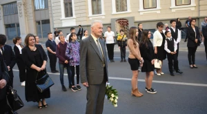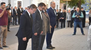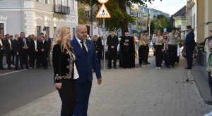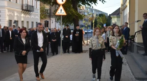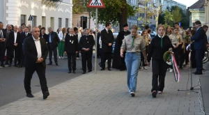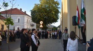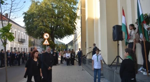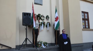 Az október 6-i főhajtás hagyományos helyszínén, a Zárda-templom előtt gyűltek egybe pénteken délután az emlékezők — annak a római katolikus tábori lelkésznek az emléktáblájánál, akit Hám János püspök szentelt pappá, aki tervbe vette az isteni szeretetről elnevezett zárdaszüzek szatmári letelepítését és aki a Zárda-templom munkálatait felügyelte.