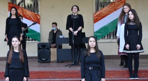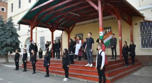 A Szatmárnémeti Református Gimnázium udvarán tartott megemlékezés a Himnusz eléneklésével ért véget.