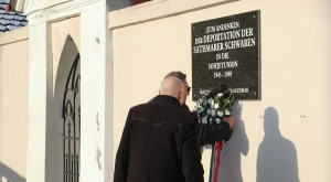 A beszédek után a résztvevők megkoszorúzták az 1945-ben a Szovjetunióba deportált svábok emléktábláját, magyarul és németül imádkoztak a kényszermunkatáborokban szenvedtek és odavesztek lelki üdvéért.