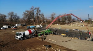 Szerda reggeltől kezdődően több mint 200 tehergépkocsi szállítja a szükséges betont a szatmárnémeti Ştrandului utcai híd első tartóoszlopának a talapzatához. A napokban közel 2,5 ezer köbméternyi beton és 180 tonnányi vas lesz felhasználva a Szamos bal partján álló első tartóoszlop körülbelül 4 méter magas talapzatának az elkészítéséhez.