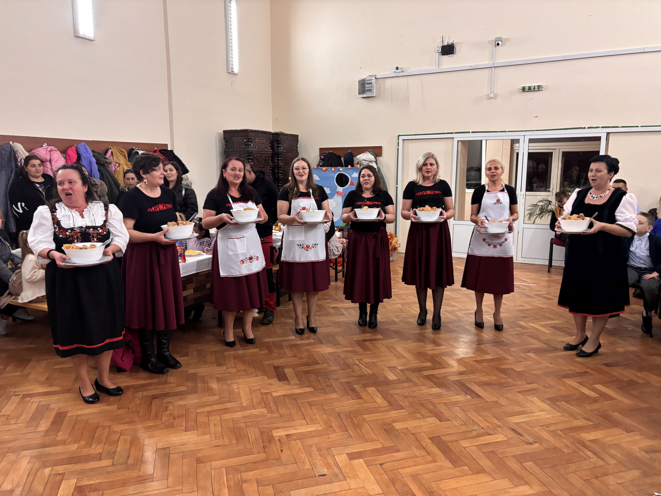 Mivel a kultúrházba visszatérő társaság nem maradhatott éhen, Márton-napi szokásához híven libazsíros kenyérrel, tepertős pogácsával és az óvó nénik és dadusok által főzött töltött káposztával fogadtak mindenkit a szervezők.