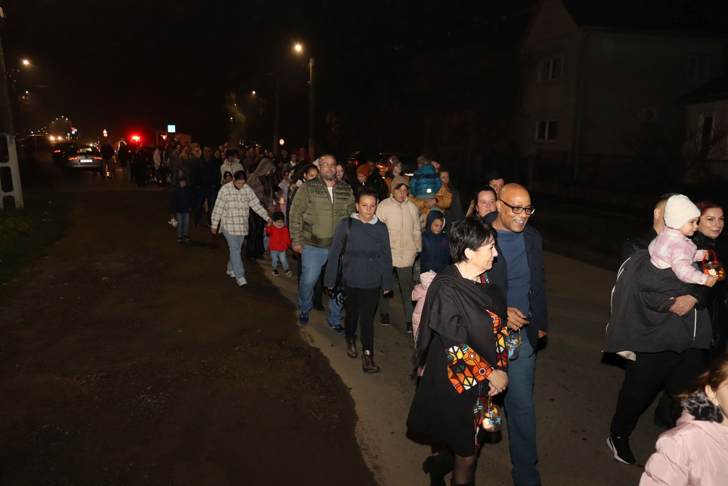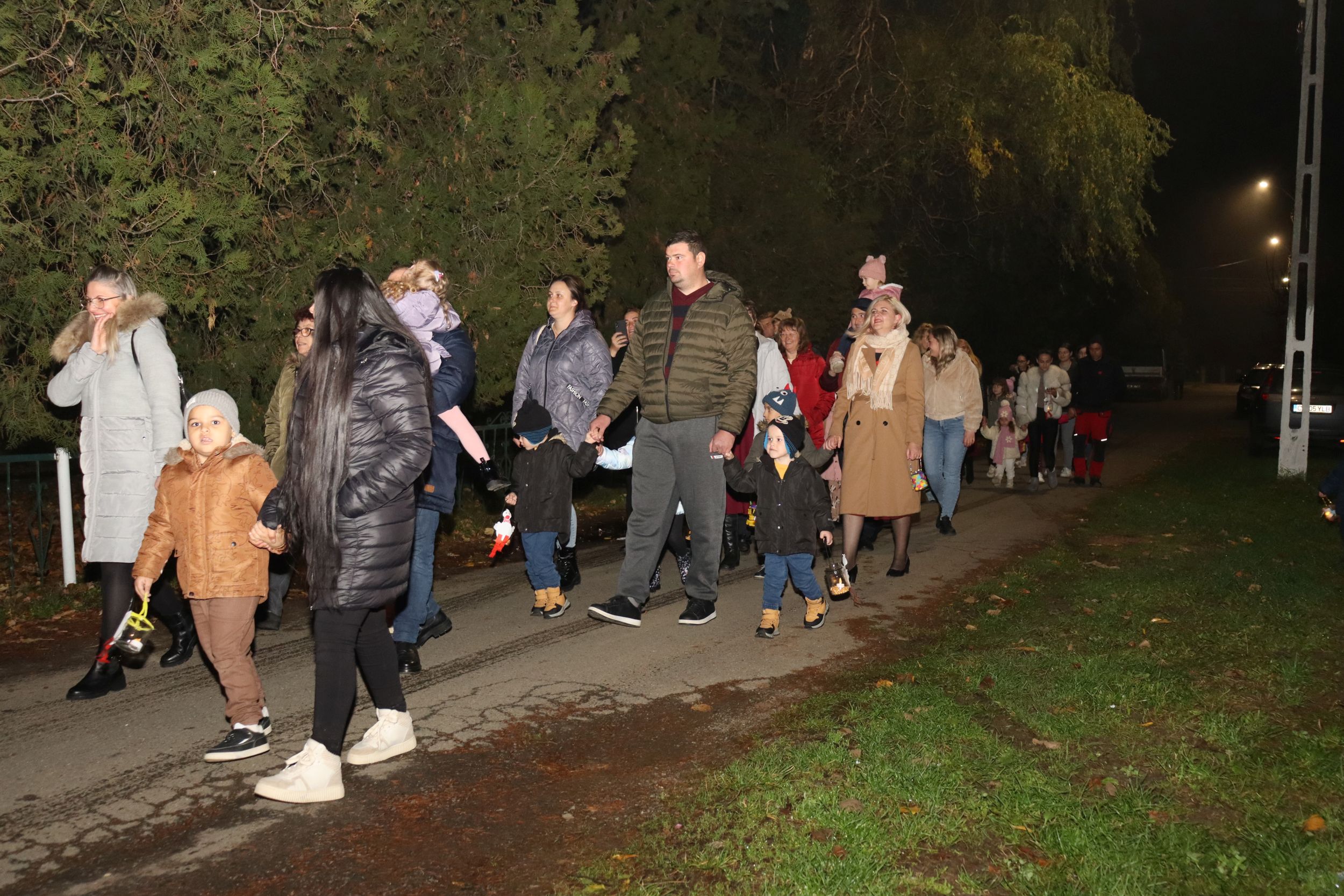 A szülőkkel és pedagógusokkal a közös, nagy munka után, a lázári tűzoltóautó felvezetésével és rendőrautó kíséretében a villogó szirénák és a lámpások fényében vonult végig a több mint 120 gyerek és felnőtt a községközpont főutcáján, Márton-napi nótákkal az ajkukon.