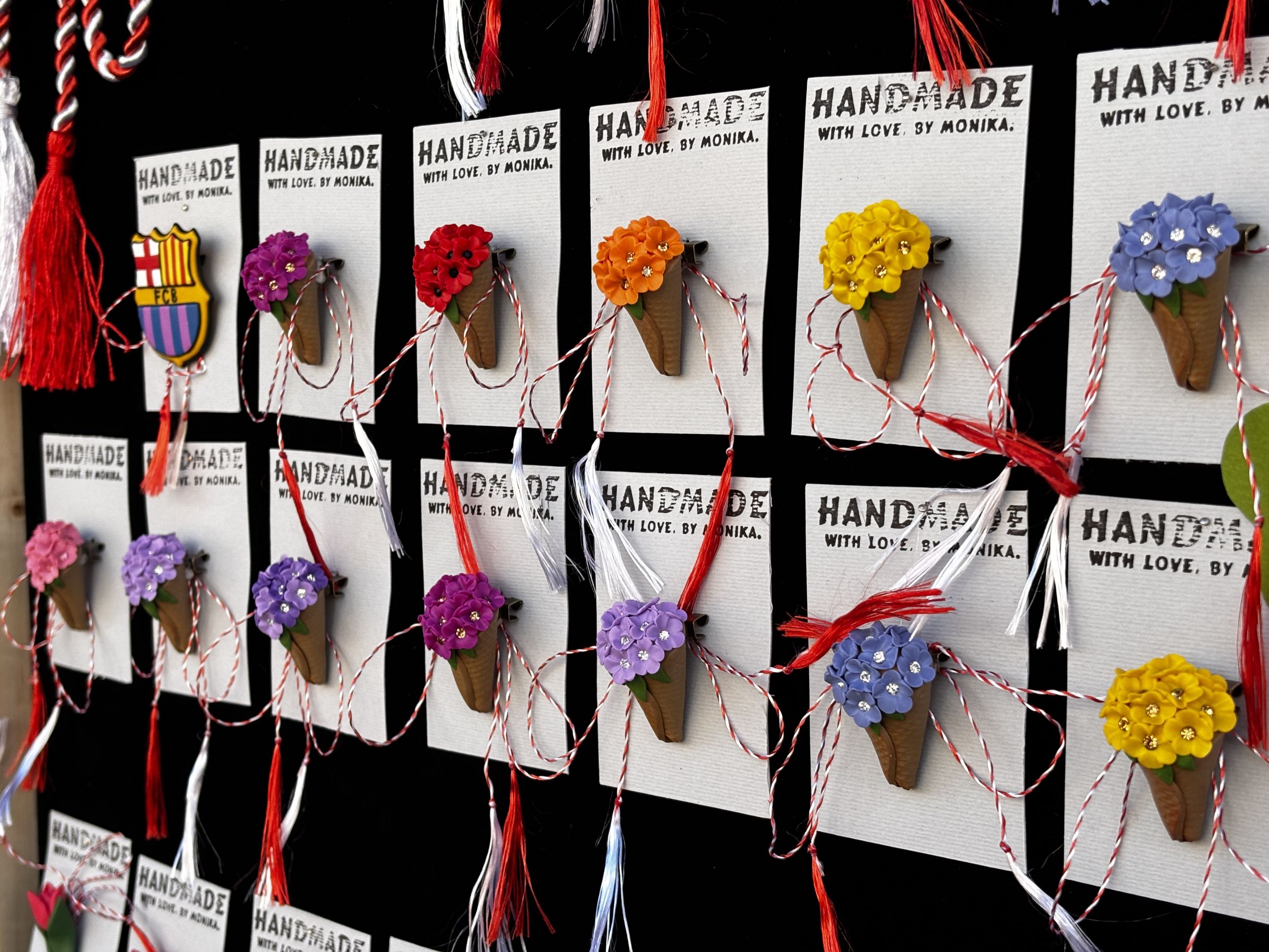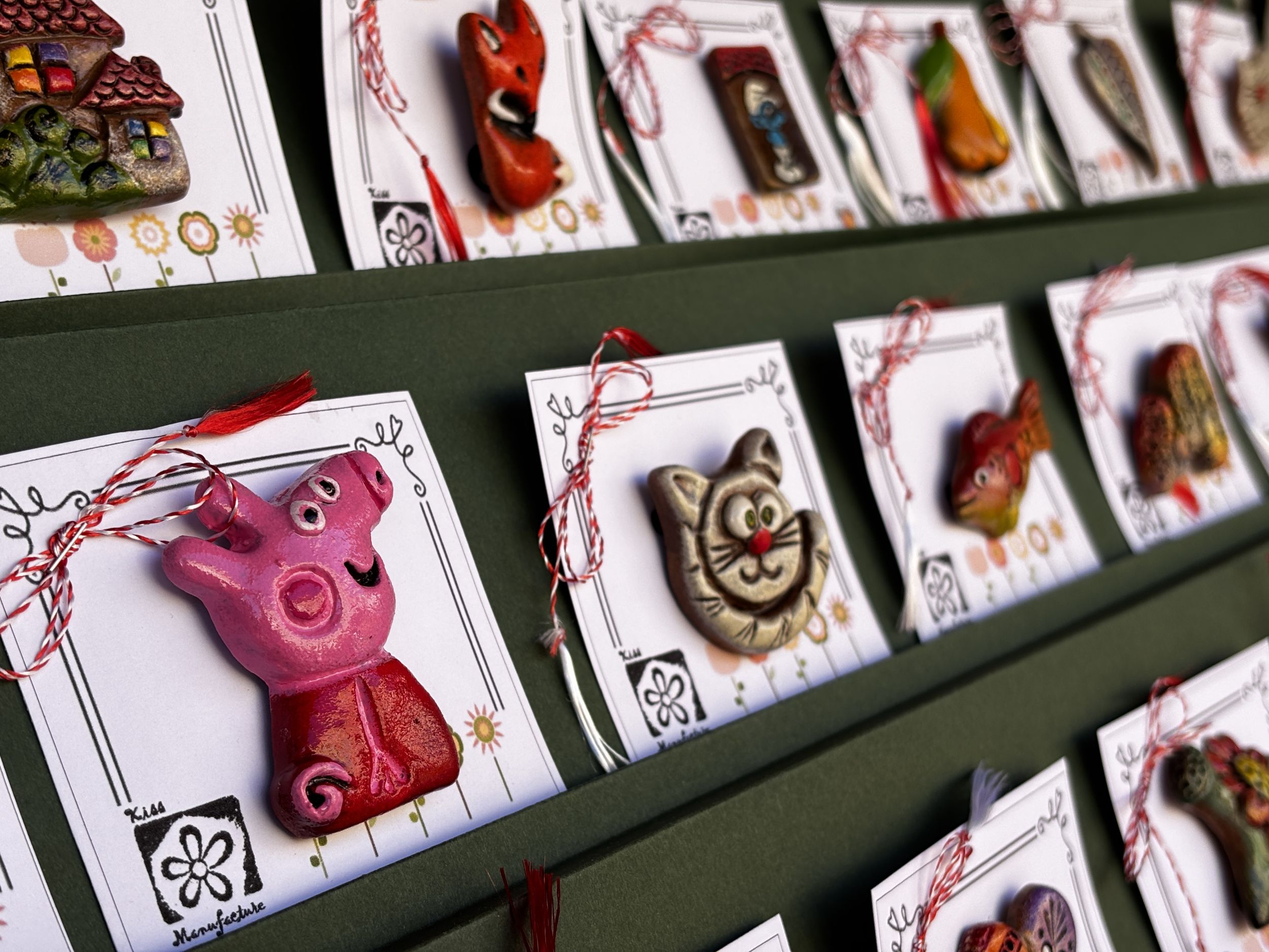 A makramé, a gyöngy, a moha, a fakéreg, a süthető gyurma, a szárított virágok, a nemez, vagy a gyanta sem hiányzik az anyaghasználatból, de bőrből készült márciuskák, nyakbavalók, fülbevalók és kitűzők is megvásárolhatók.