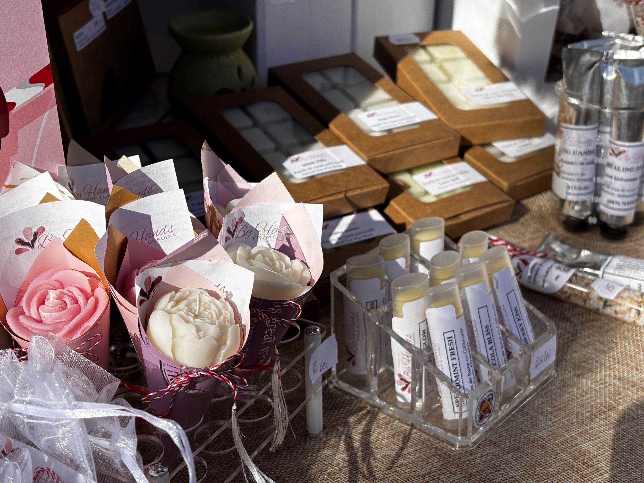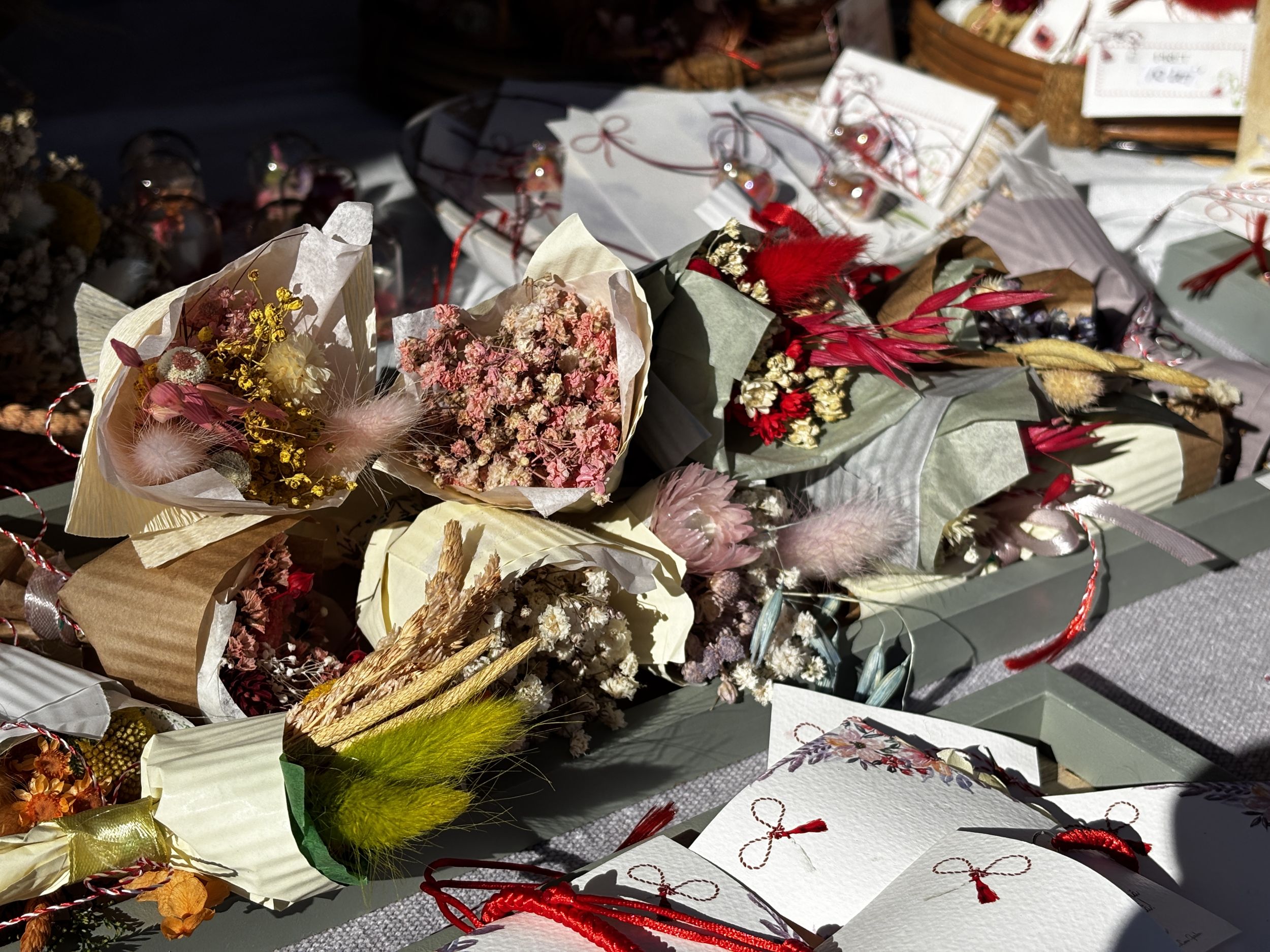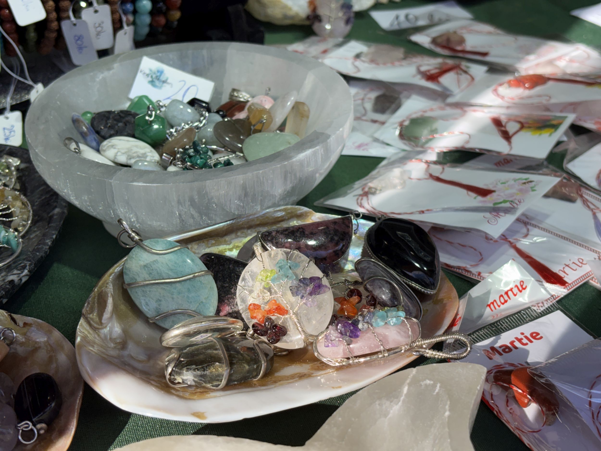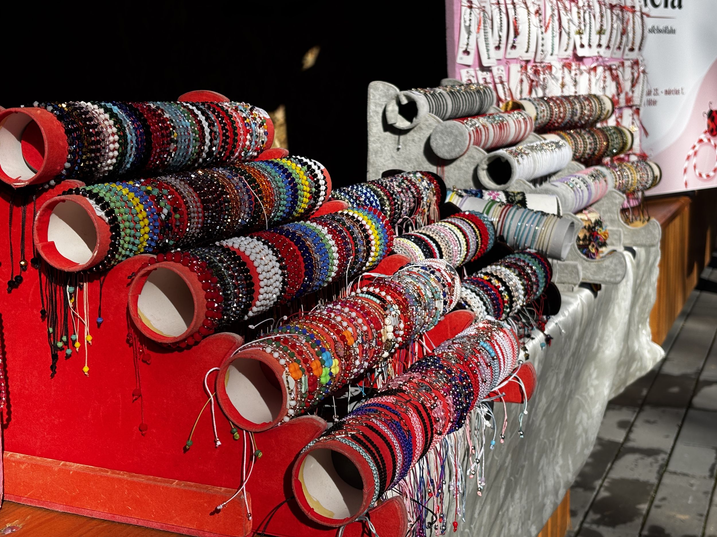 Alu-drótból font márciuskák, asztali díszek, vagy kisebb tablók is vásárolhatóak, féldrágakőből készül gyűrűk, medálok, karkötők és fülbevalók is. Akár ízléshez, akár horoszkóphoz kötve, hazavihető ametisztből, obszidiánból, jáspisból, vagy onixból készült ékszer és sok minden más is a vásárból ami nem csak a tavaszi időszakra kínál örömöt a szemnek.