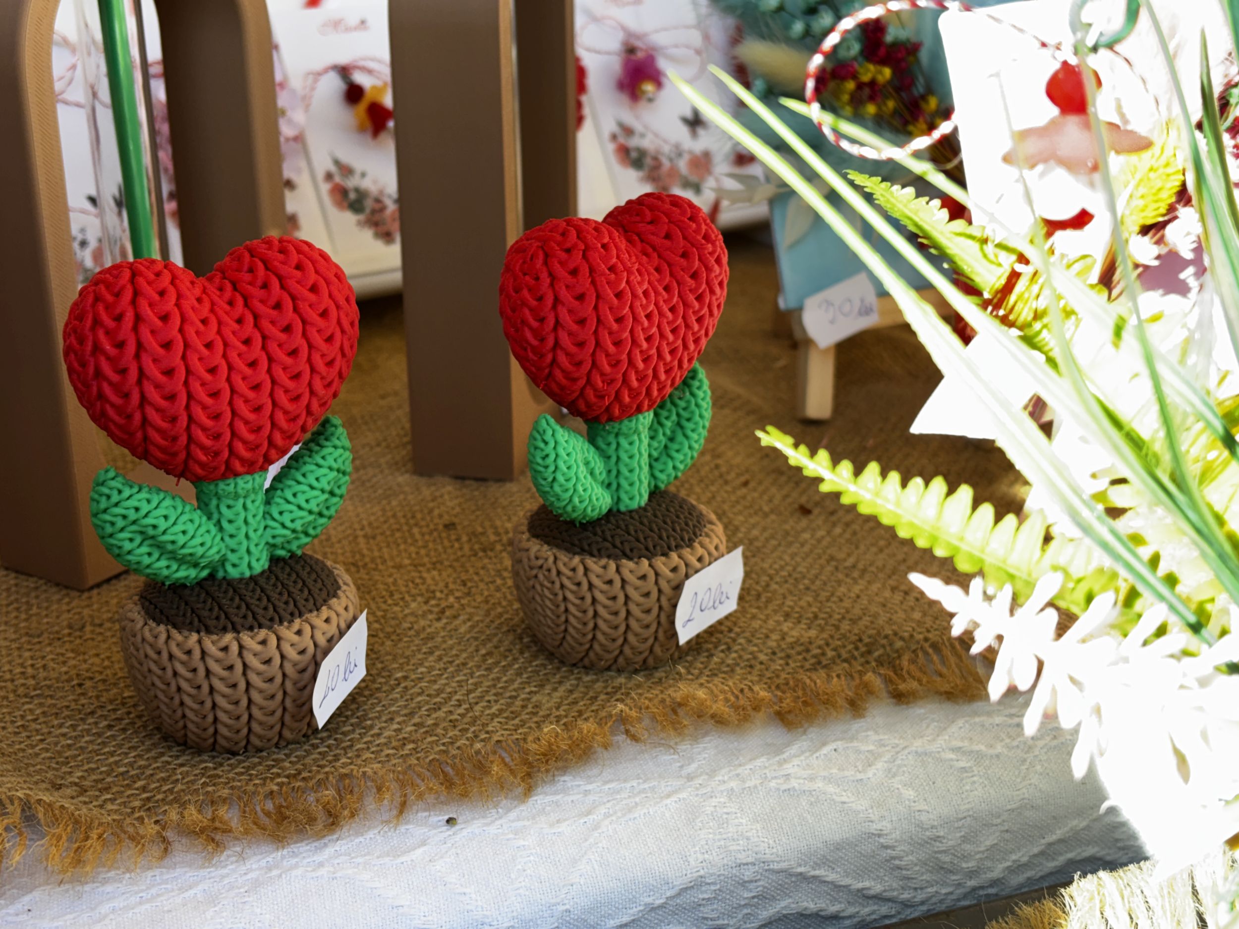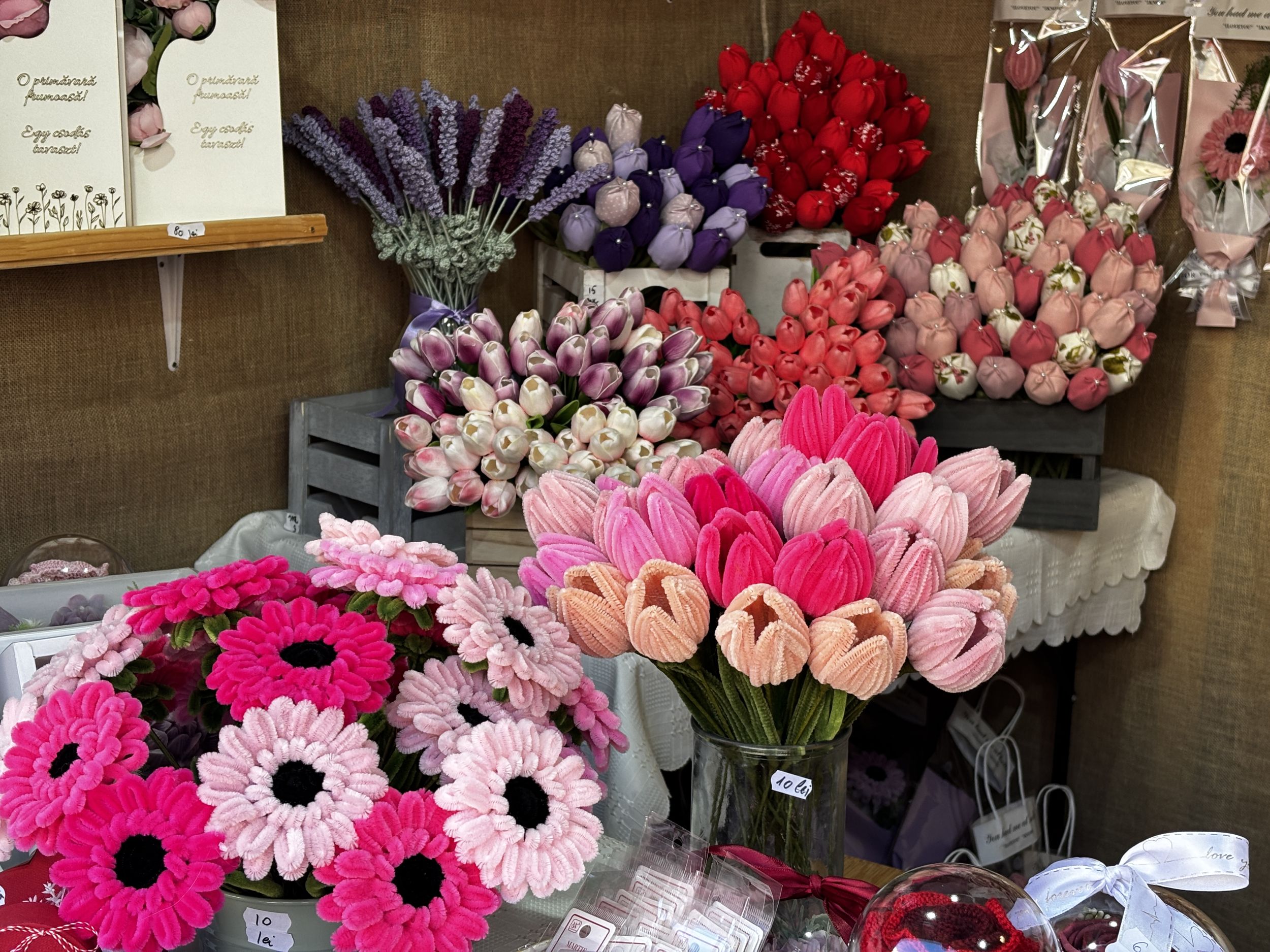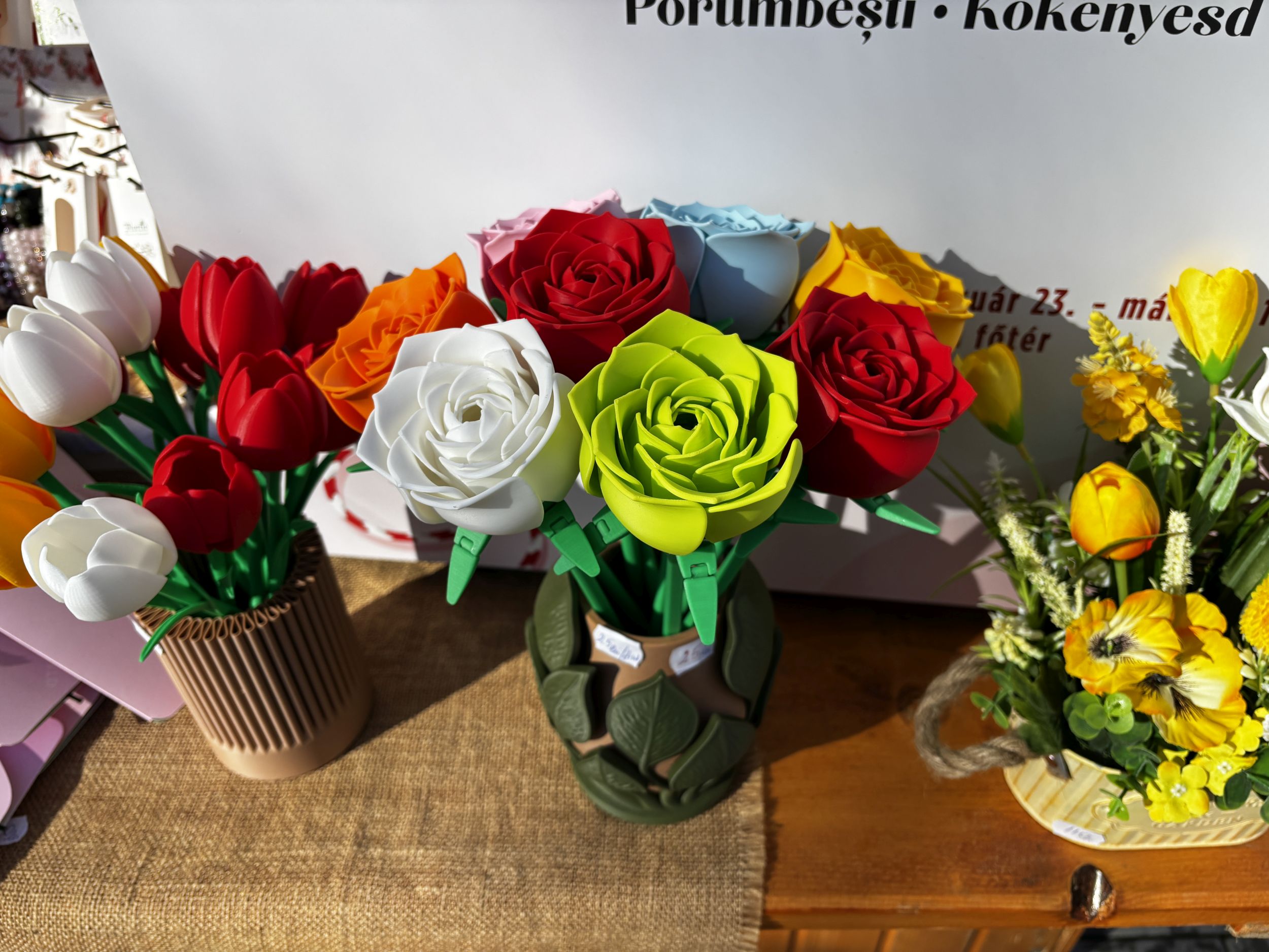 Virágfelhozatalból sincs hiány: horgolt és varrott virágok, zsenília-drótból készült bolyhos virágok, de 3D nyomtatóval készültek is, amelyek például nyitható, vagy csukható szirmúak, érdekesek és szépek, de nem igényelnek törődést.