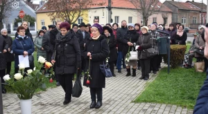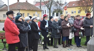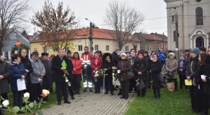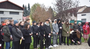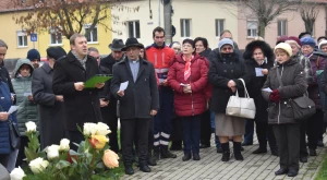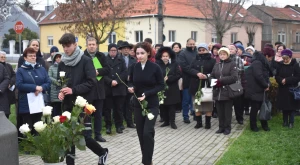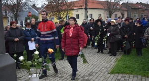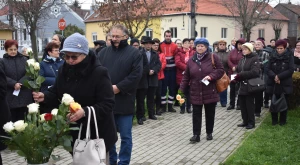 Szent Erzsébet himnuszának közös eléneklése után a résztvevők elhelyezték rózsáikat a szobor talapzatán.