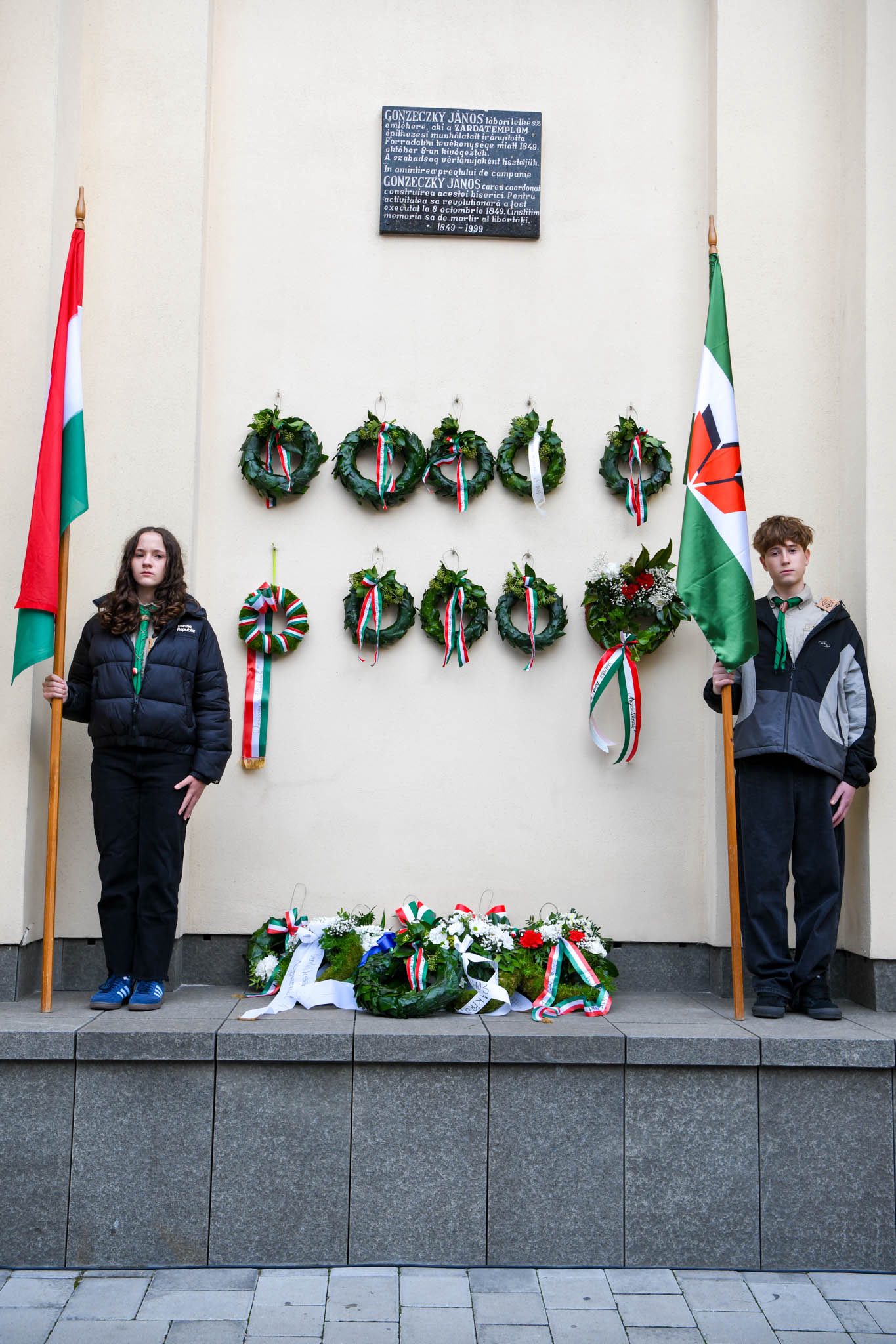 Az október 6-i főhajtás hagyományos helyszínén, a Zárda-templom előtt gyűltek egybe hétfőn délután az emlékezők, köztük dr. Tilki Attila országgyűlési képviselő és Kosztya Zoltán zajtai polgármester — annak a római katolikus tábori lelkésznek az emléktáblájánál, akit Hám János püspök szentelt pappá, aki tervbe vette az isteni szeretetről elnevezett zárdaszüzek szatmári letelepítését és aki a Zárda-templom munkálatait felügyelte. Gonzeczky János 1844-től mezőhegyesen teljesített lelkészi szolgálatot, s négy évvel később, már a kezdetektől a forradalom pártjára állt, amiért a településen lévő, császárpárti tisztek és legénység gyakran panaszkodott is. Gonzeczky 1848 decemberében elhagyta a misék végéről a császárért való imádkozást, amit egy hazafias imádsággal váltott fel, 1849. január elején a szószékről felolvasta Kossuth december 22-ei kiáltványát, amelyben Magyarország népeit általános népfelkelésre szólítja fel, februárban egy szentmisén úgy nyilatkozott, hogy „átkozott legyen az, aki az osztrák dinasztiának engedelmeskedik”, április végén pedig a szószékről kihirdette a függetlenségi nyilatkozatot, majd egy beszédében kiemelte Magyarország függetlenségének fontosságát. Mindezek tükrében nem meglepő, hogy a lelkész 1849. augusztus 6-án és 7-én még egyházi szolgálatait végezte, majd ezt követően elfogták és letartóztatták — Gonzeczky és más lelkészek esetében elsősorban a felségsértő beszédek és cselekmények elkövetését vizsgálták a bíróságok, amit halállal büntettek. Ügyében Hám János püspök is közbenjárt Haynaunál, s bár a táborszernagy átvette ugyan a kegyelmi kérvényt, de Gonzeczky életét nem volt hajlandó megmenteni — 1849. október 8-án hajnalban, a mindössze 45 éves lelkésszel sortűz végzett.