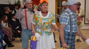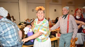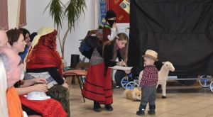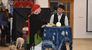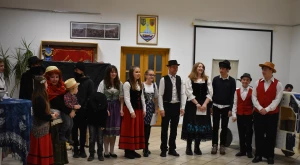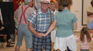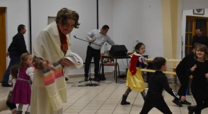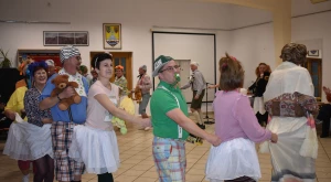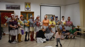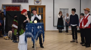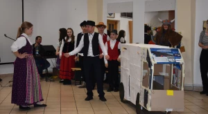 Kora este aztán a gyermekfarsang a „nagyok” Faschingfestjére váltott — amelyről természetesen nem hiányoztak a kiapadhatatlan energiával bíró, hercegnőnek, tündérnek, varázslónak, csontváznak öltözött apróságok nagy része sem —, és Svábház nagytermében egybegyűlt batyus bálozók szokás szerint egy humoros és meglepetésben bővelkedő műsor-összeállítással alapozták meg az est hangulatát. Előbb gyerkőcök tánca csalt mosolyt mindenki arcára, majd a szinfalui Martin Erli története — a múlt század eleji hangulatot idéző, zenei aláfestésű pantomim-szerű előadás az ellopott lovait, majd ellopott autóját kereső, és a siker érdekében két jósnő segítségét is kérő Martin humoros története azért is volt különleges, mert az összekötő szöveget nem németül, hanem svábul mondta a narrátor.