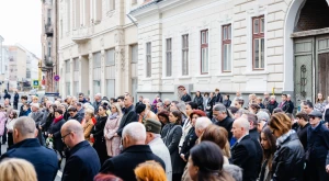 Az október 6-i főhajtás hagyományos helyszínén, a Zárda-templom előtt gyűltek egybe vasárnap délelőtt az emlékezők — annak a római katolikus tábori lelkésznek, Gonzeczky Jánosnak az emléktáblájánál, akit Hám János püspök szentelt pappá, aki tervbe vette az isteni szeretetről elnevezett zárdaszüzek szatmári letelepítését és aki a Zárda-templom munkálatait felügyelte.