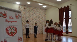 A hagyományőrző versenyen két csoportban mérhették össze a tudásukat a kicsik: népi gyermekjátékok és néptánc, valamint versmondás kategóriában. Akkora volt az érdeklődés a vetélkedő iránt, hogy a díszteremben el sem fért az összes ügyes apróság, hanem sokan egy arra kialakított teremben kézműves foglalkozásokon alkothattak, falatozhattak, amíg várakoztak.