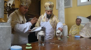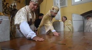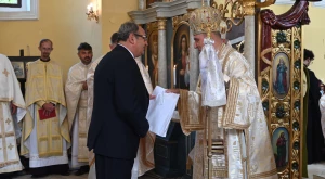 A szertartás ünnepi körmenettel kezdődött az oltárban elhelyezett ereklyével a középpontban, majd megszentelték az oltárt, a templom falait és a frissen restaurált ikonosztázt, amelynek XIX. században készült képeit tavaly késő ősszel a Károlyi-kastélyban állították ki, amíg foglalókereteik felújítása befejeződött.