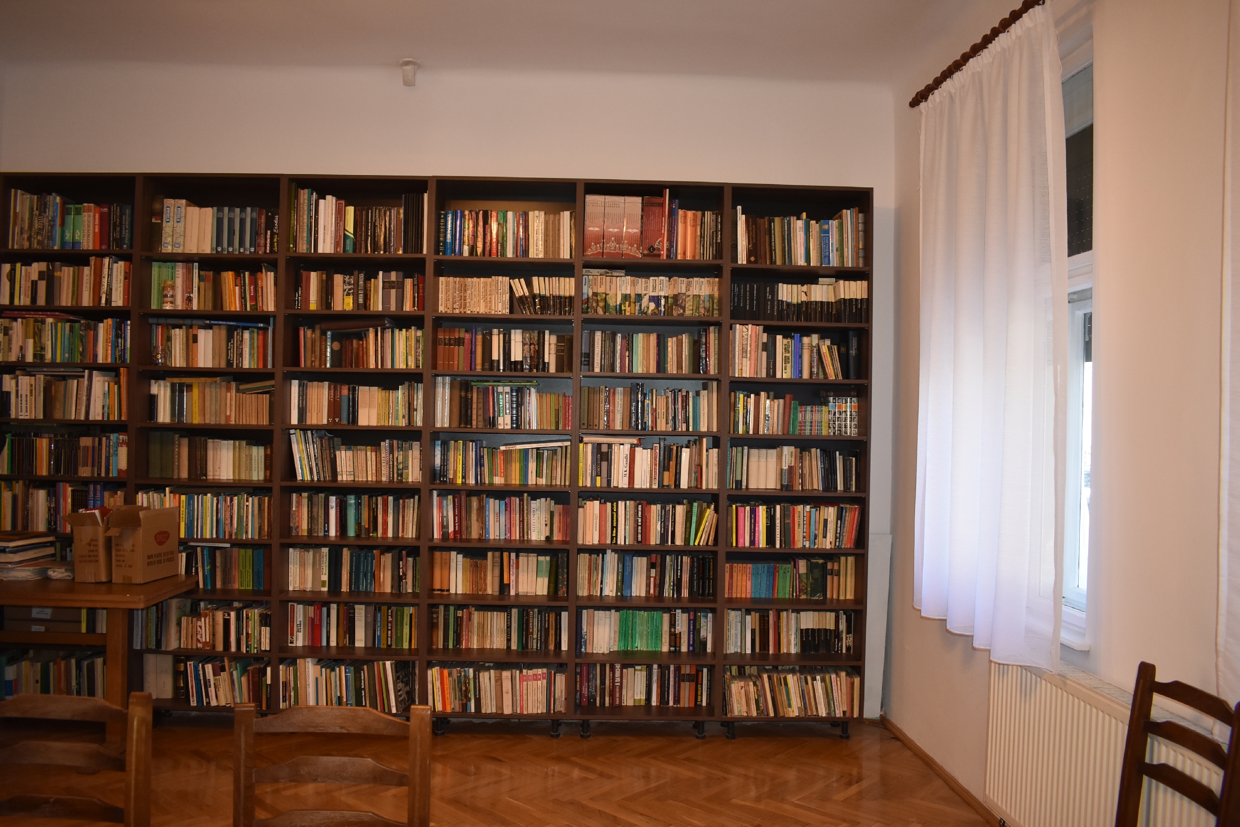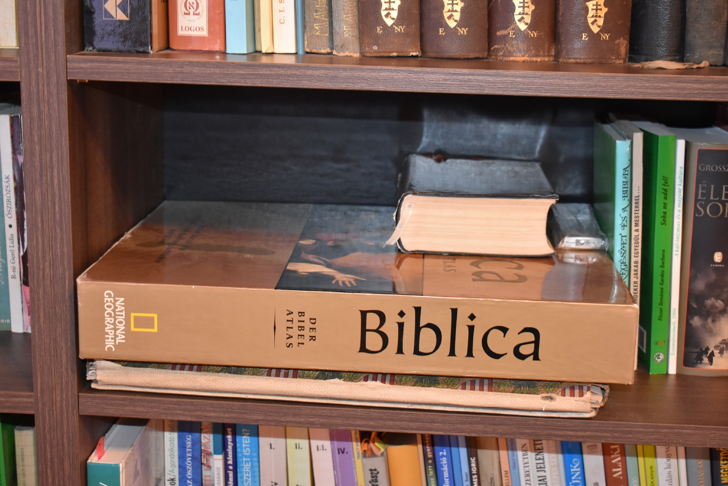 Szemet – lelket örvendeztető a plafonig érő, tömött könyvespolcok látványa — mellettük kapott helyett az a szintén dr. Higyed János apai örökségéből származó, nagyméretű, a háborgó tengert lecsillapító s a megrémült tanítványokat megnyugtató Krisztust ábrázoló olajfestmény is. S ugyancsak ide kerül az az emléktábla, amely az adományozás tényét örökíti meg.