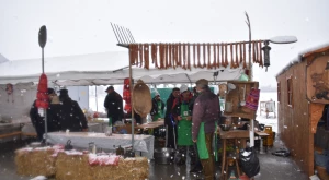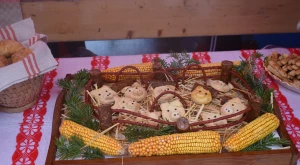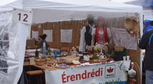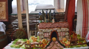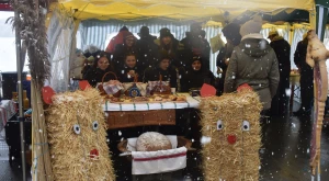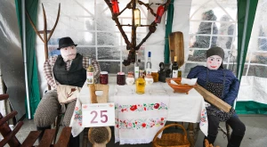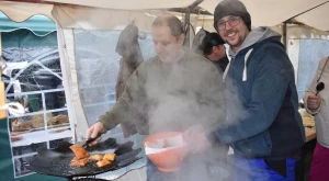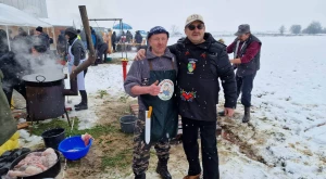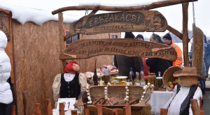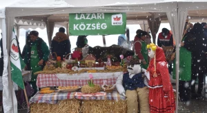 A havazás elálltával teljes szépségükben láthatóvá váltak a porták és szépasztalok — a halmi csapat ügyes kezű asszonyai több mint négy órán át „építették” a kolbászházikót, de alkotás terén nem maradtak el a hadadiak, lázáriak sem; gyönyörűség volt ránézni a kaplonyiak kemencében sült hatalmas házi kenyerére, akárcsak a bogdándiak csodálatos szőtteseire, az egriek hímzett kötényével versengett a mezőteremieké; a börvelyi és érendrédi portán magyaros népviseletbe öltöztetett babák, máshol vidám szalmabábuk köszöntötték a vendégeket. No meg a finomságoktól roskadozó asztalok, amelyeken az otthon készített ízes falatok mellől természetesen nem hiányoztak a helyben, frissen készültek sem — Avasújvárosban szalagos fánkot (elvégre farsang van), aromás lekvárokkal is kínáltak a „településeket” végiglátogató Pataki Csaba tanácselnök és Vincze Lóránd EP-képviselő nagy örömére, no meg „egy kis hájas tésztát s háromféle töltelékű kalácsot” ; eközben Kereskényi Gábor polgármester a megyeközpont testvérvárosát, Beregszászt vezető Babják Zoltánt gardírozta; a Véndiákszövetség csapata tárcsán hirtelen sült hússal, a túrterebesiek különleges strudlival (a krumplit a tésztába gyúrta Maier Nándor, nem töltelékként használta), az erdődiek mini-kolbászkákkal, a falugazdászok töltött káposztával is fogadták a látogatókat. Látogatókból pedig nem volt hiányán: egyrészt a kiérkező szatmáriak álltak meg, ültek le a portáknál, másrészt a csapatok tagjai „léptek át” egymáshoz egy kis folyékony vagy szilárd kóstolóra, beszélgetésre a Böllérverseny hagyományosan közösségépítő szellemében, amely a két év kényszerszünet okán már mindenkinek nagyon hiányzott.