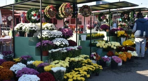 Sokan már elindultak emlékezni, rokonaikkal együtt temetőt látogatni vagy egyedül végigjárni-zarándokolni szeretteik, barátaik, ismerőseik végső nyughelyét, mások már jóval kivilágítás előtt kimennek, kitakarítják a sírokat (nem véletlenül nevezik az ünnep előtti hetet Erdélyben halottak hetének), s elindulnak a piacjáró körútra, hogy virágot, koszorút, mécsest vásároljanak, amelyekkel leróhatják majd kegyeletüket. Az enyhe őszi időjárásnak is köszönhetően színpompás virágtengerben tobzódnak Szatmárnémeti piacai, s a bőséges kínálatban mindenki talál ízlésének és pénztárcájának megfelelőt: a legkülönbözőbb árnyalatokban pompázó cserepes krizantémbokrok ára átlagosan 10 lejnél, a koszorúké 20 lejnél kezdődik, s mérettől, illetve alapanyagtól függően (szalmavirág, őszi csonthéjasok-tobozok, selyemvirág, műanyag virág, élővirág) emelkedik. Az elmúlt években nagyon népszerű mécseses ikebanákból még nem volt kínálat pénteken délelőtt, volt viszont különféle fagytűrő virágokból, növényekből összeállított „örökzöldcserép”, növények és méret függvényében 30 lejtől kezdődően. S bár piacjárásunkkor a gazdag kínálat tekintetében nem volt lényeges különbség a Szamos- és a nagypiac között, nézelődők és vásárlók tekintetében annál inkább, utóbbin lényegesen kevesebben fordultak meg.