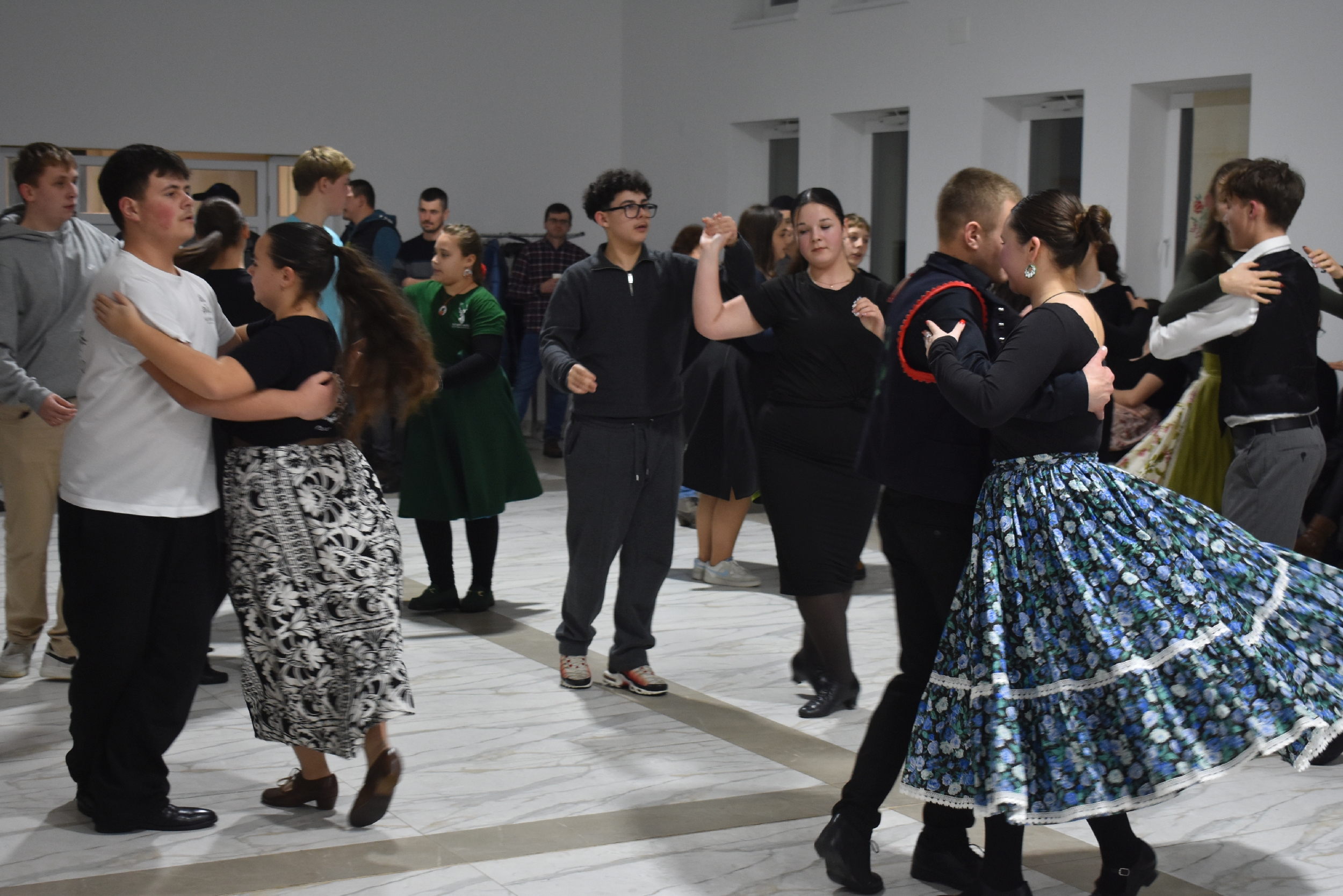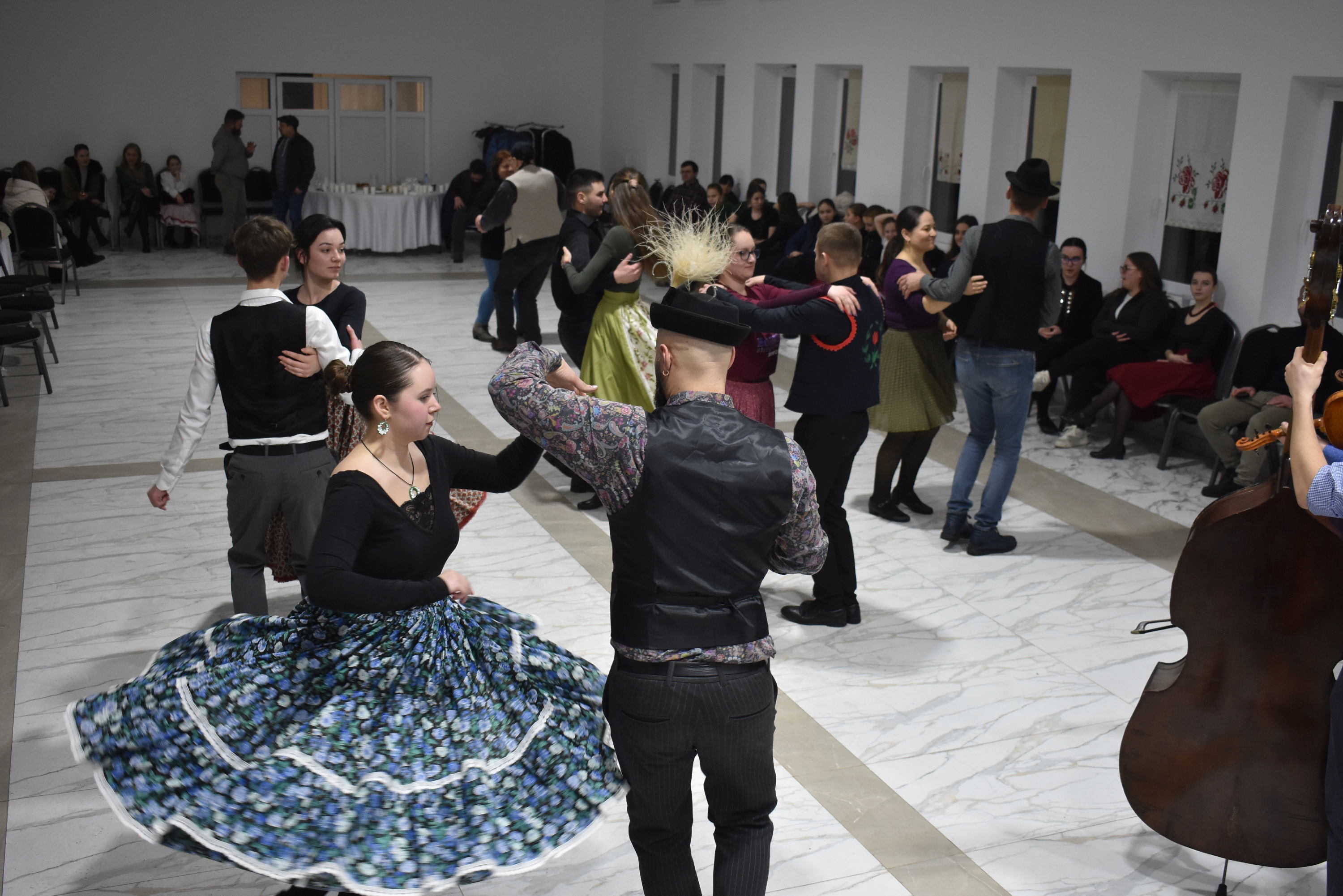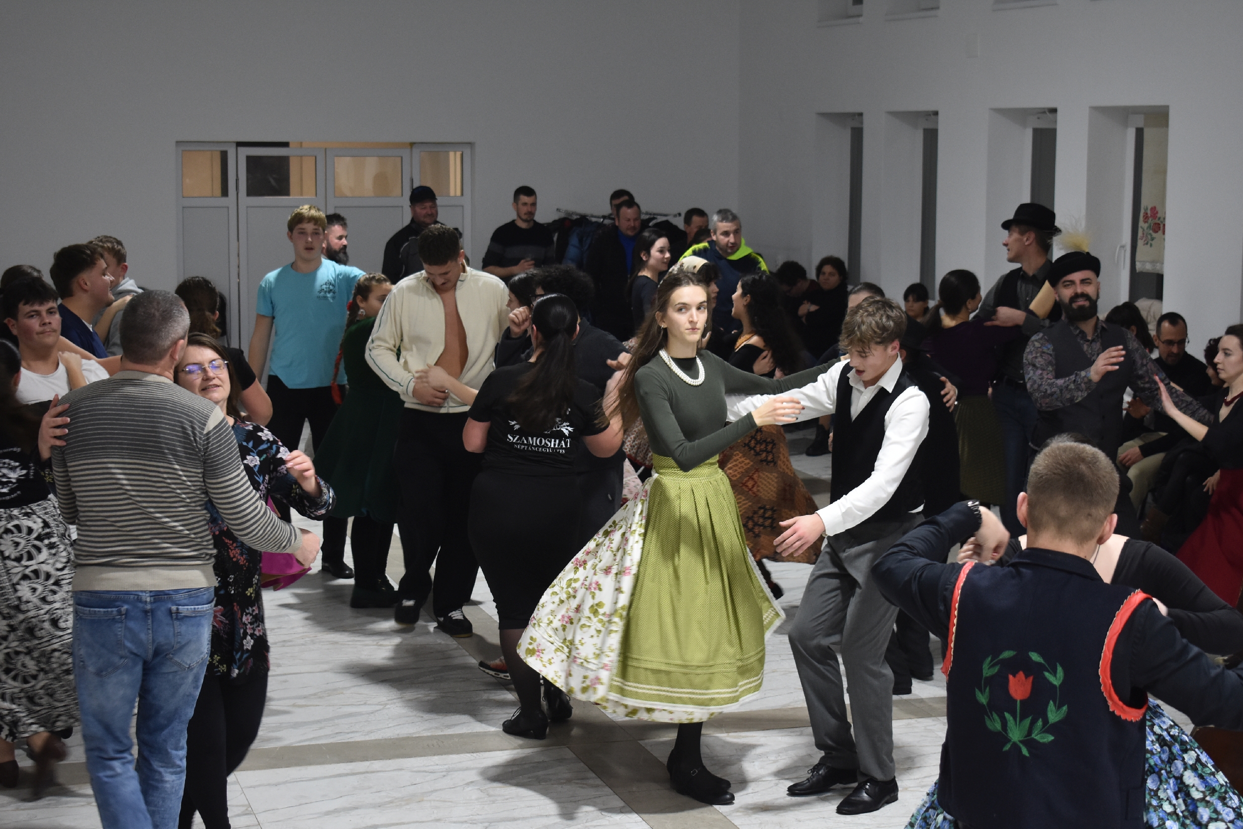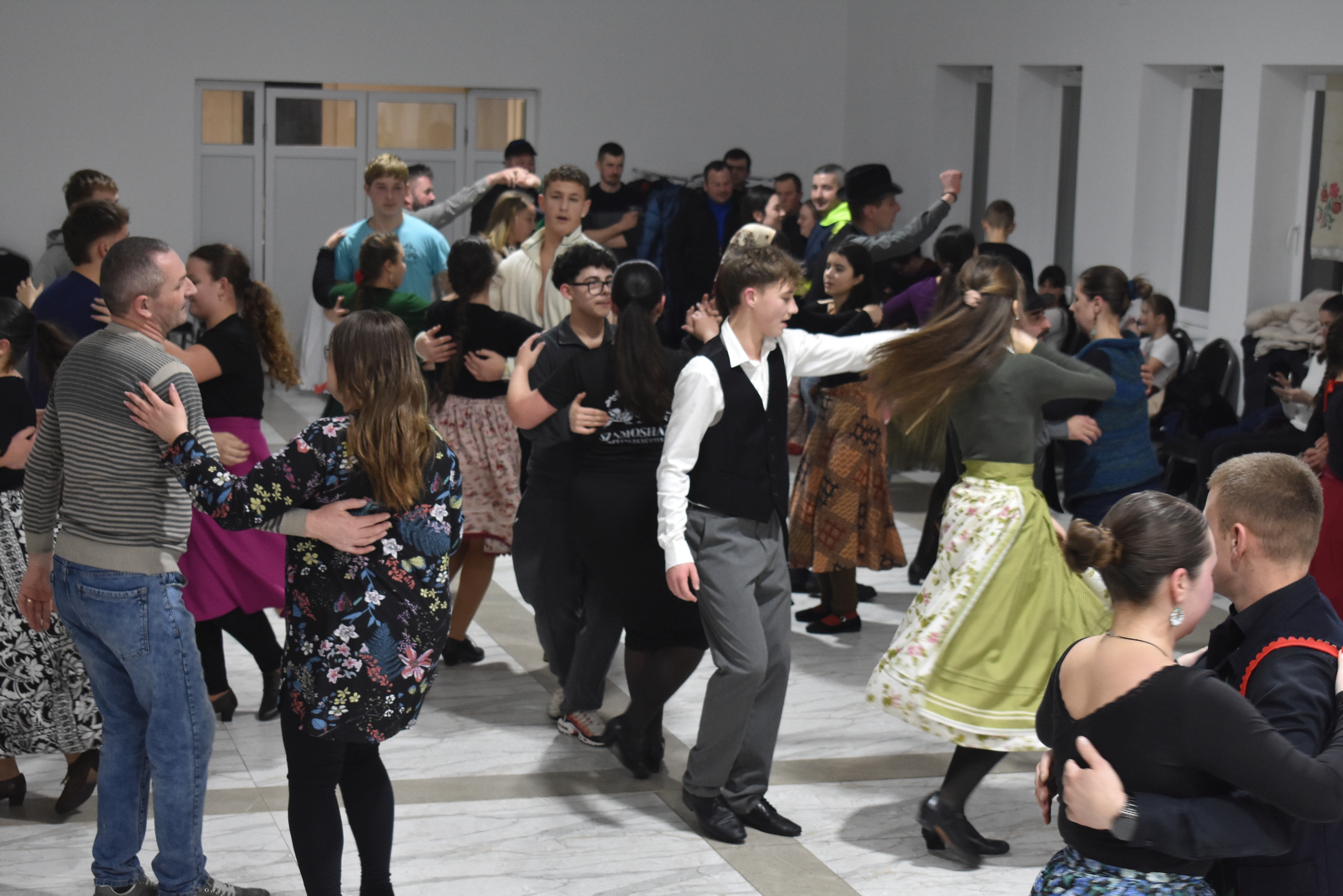 Természetesen a táncházba nem csak helyiek érkeztek, hiszen az Erdélyi Hagyományok Háza programjának egyik célja, hogy az adott településre máshonnan is jöjjenek a vendégek, táncosok – és jöttek is Börvelyből, Halmiból, Szatmárnémetiből, Pusztadarócról.