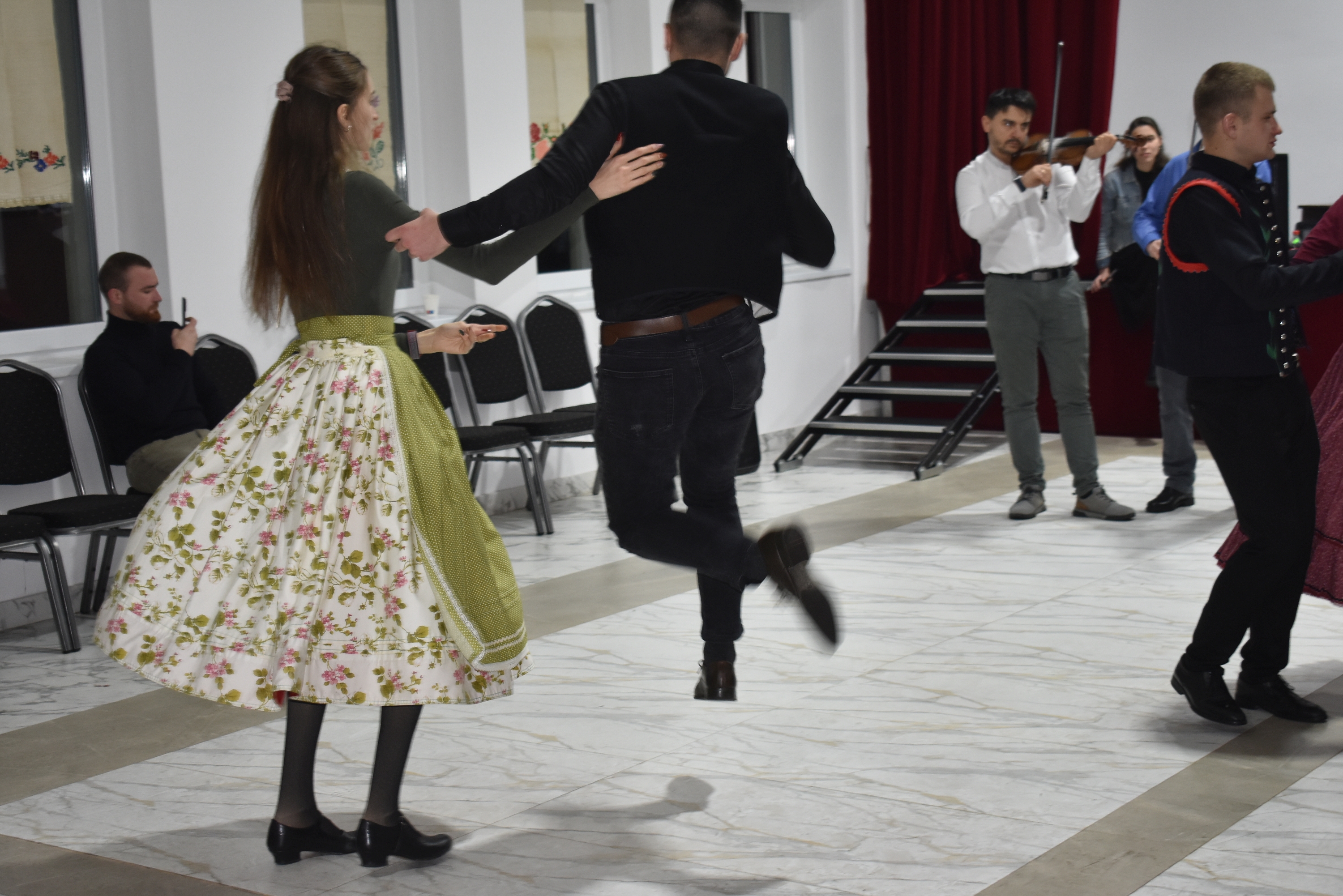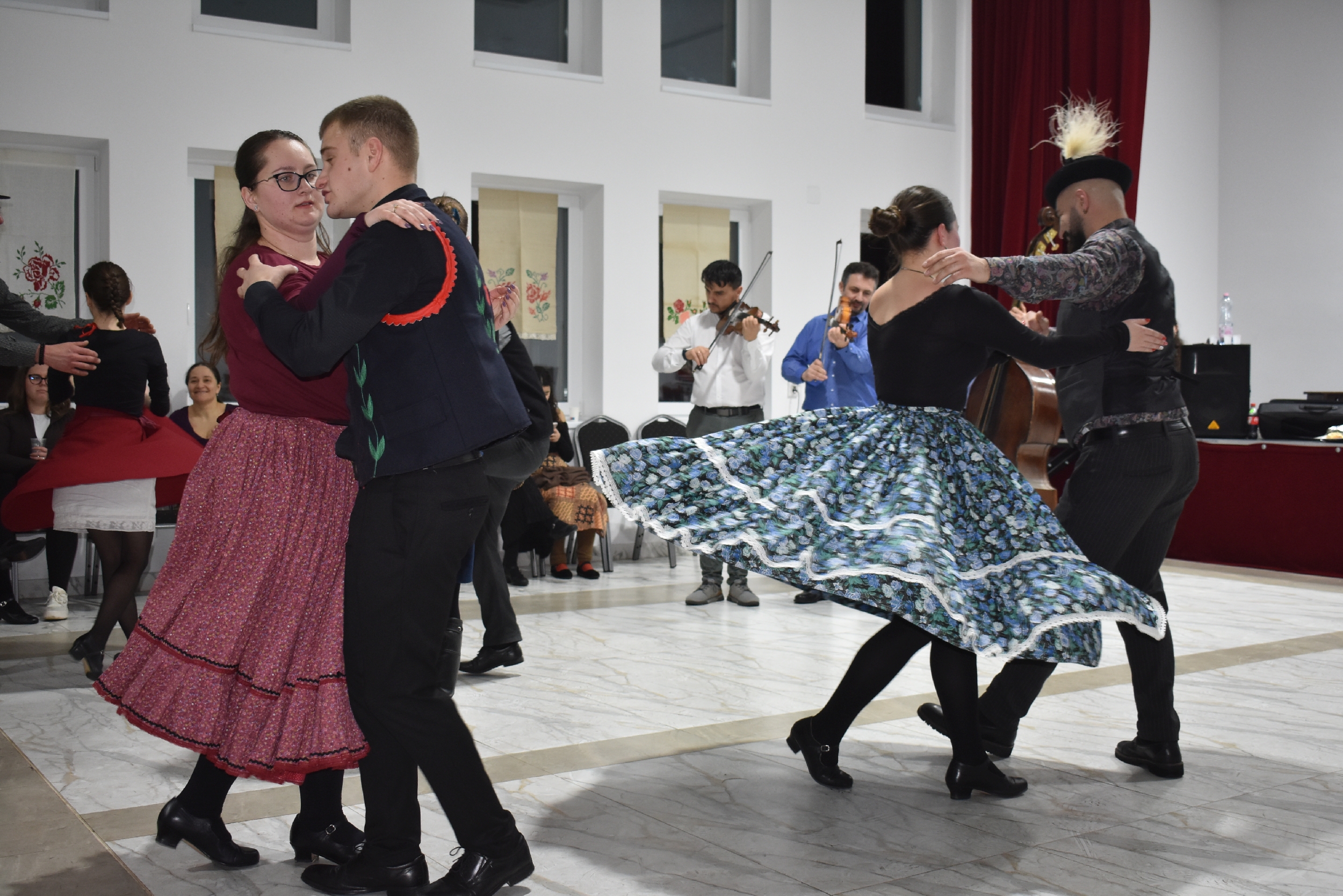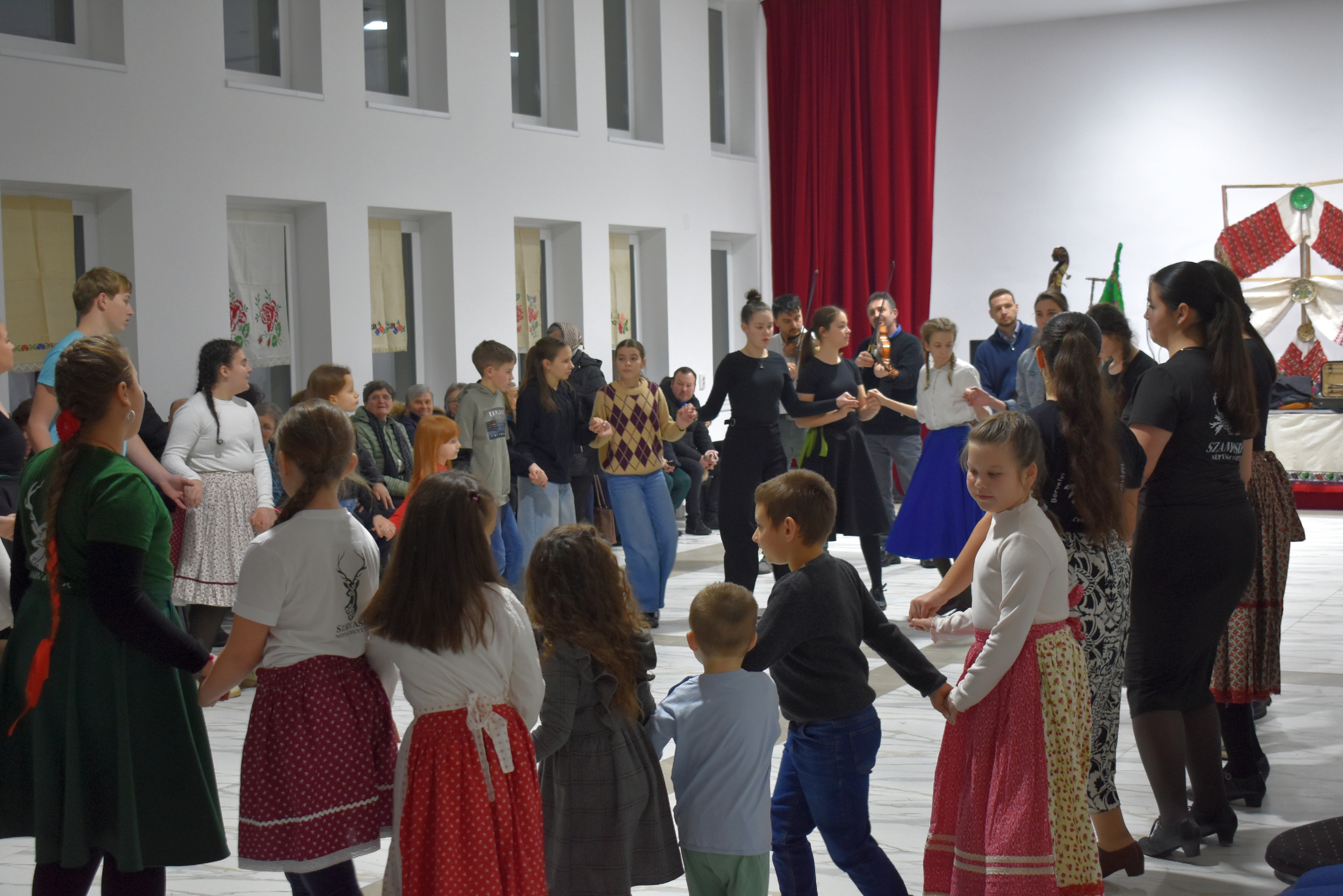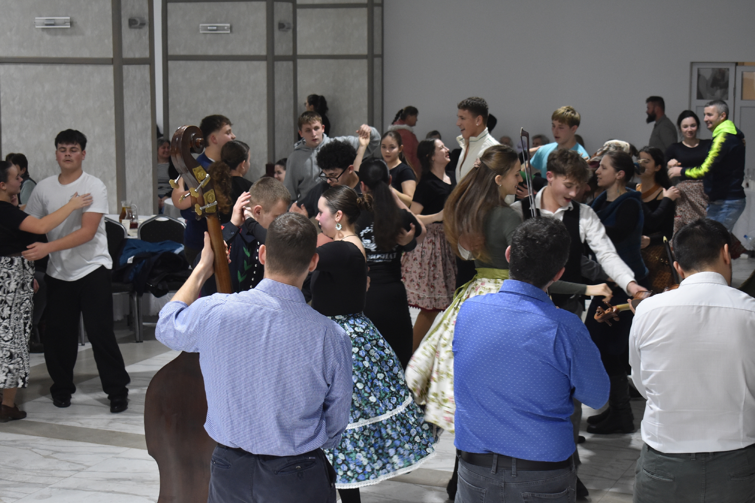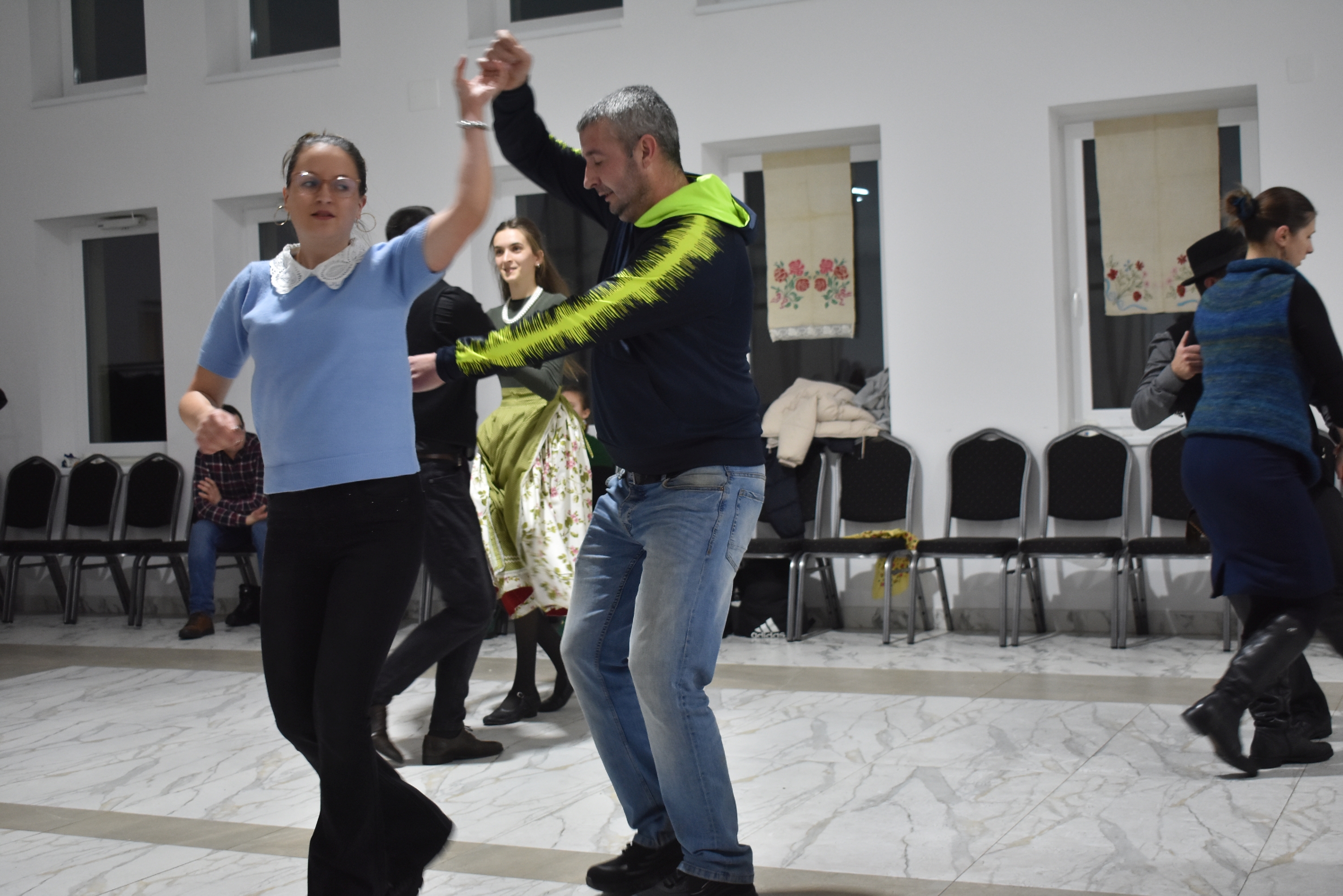 Természetesen a táncházba nem csak helyiek érkeztek, hiszen az Erdélyi Hagyományok Háza programjának egyik célja, hogy az adott településre máshonnan is jöjjenek a vendégek, táncosok – és jöttek is Börvelyből, Halmiból, Szatmárnémetiből, Pusztadarócról.