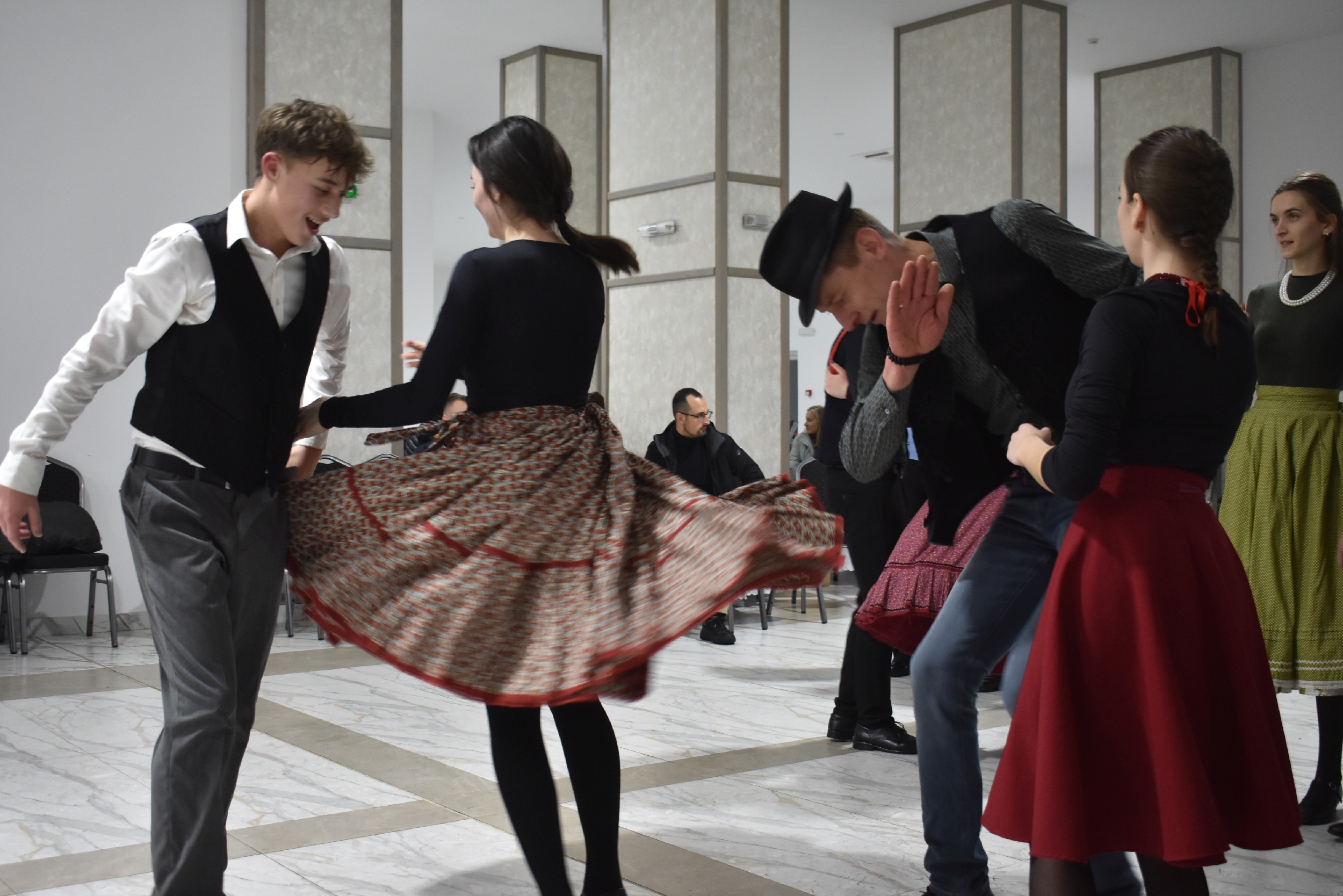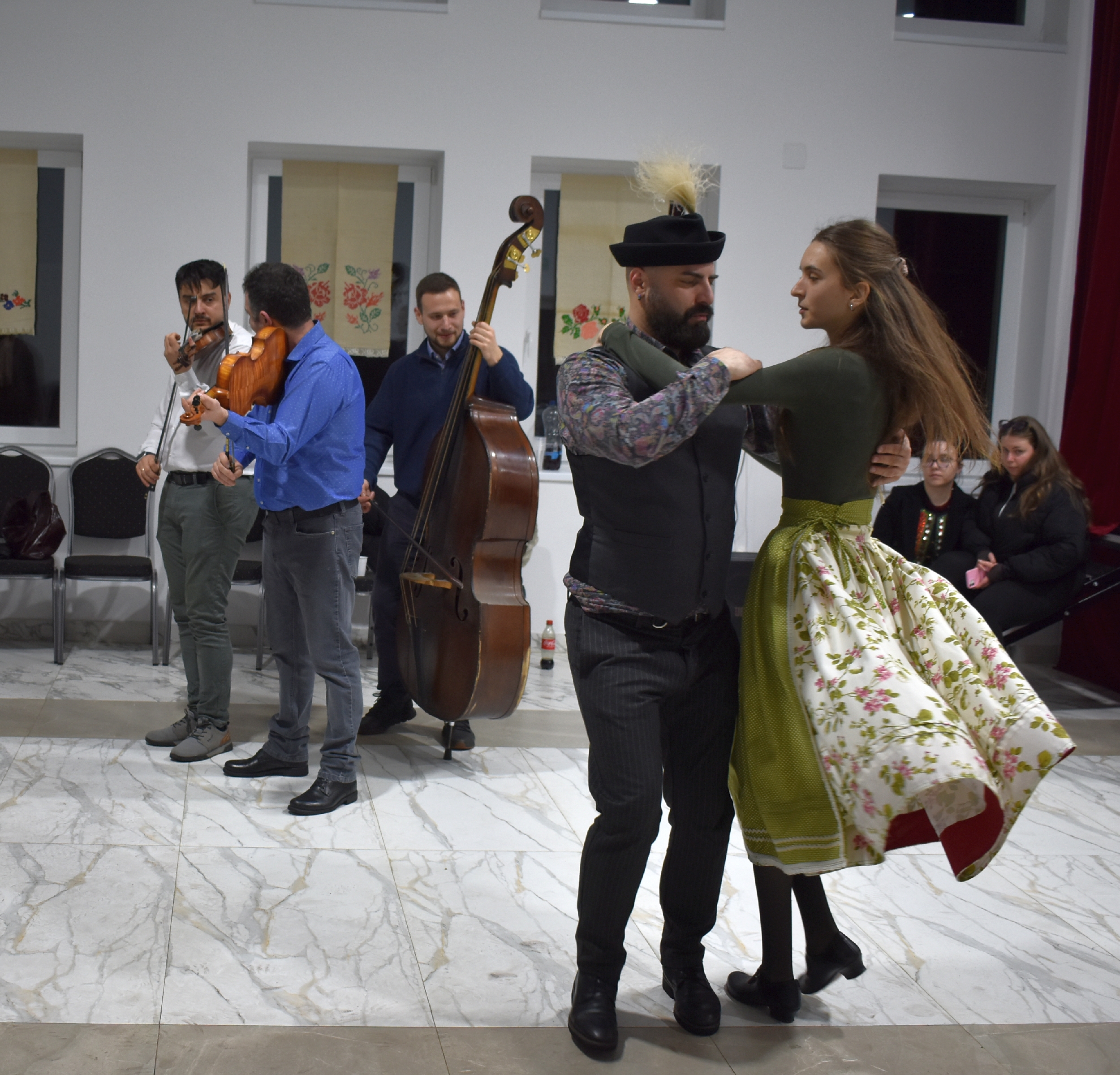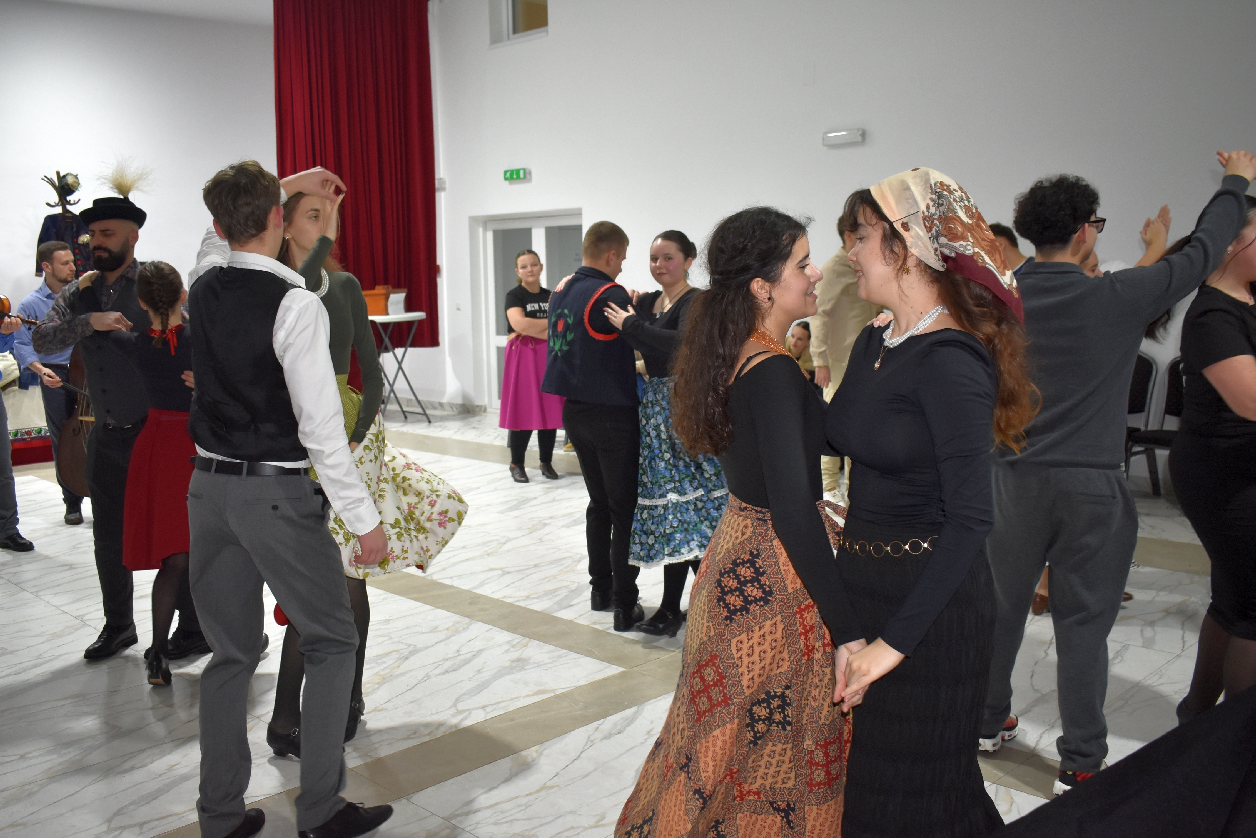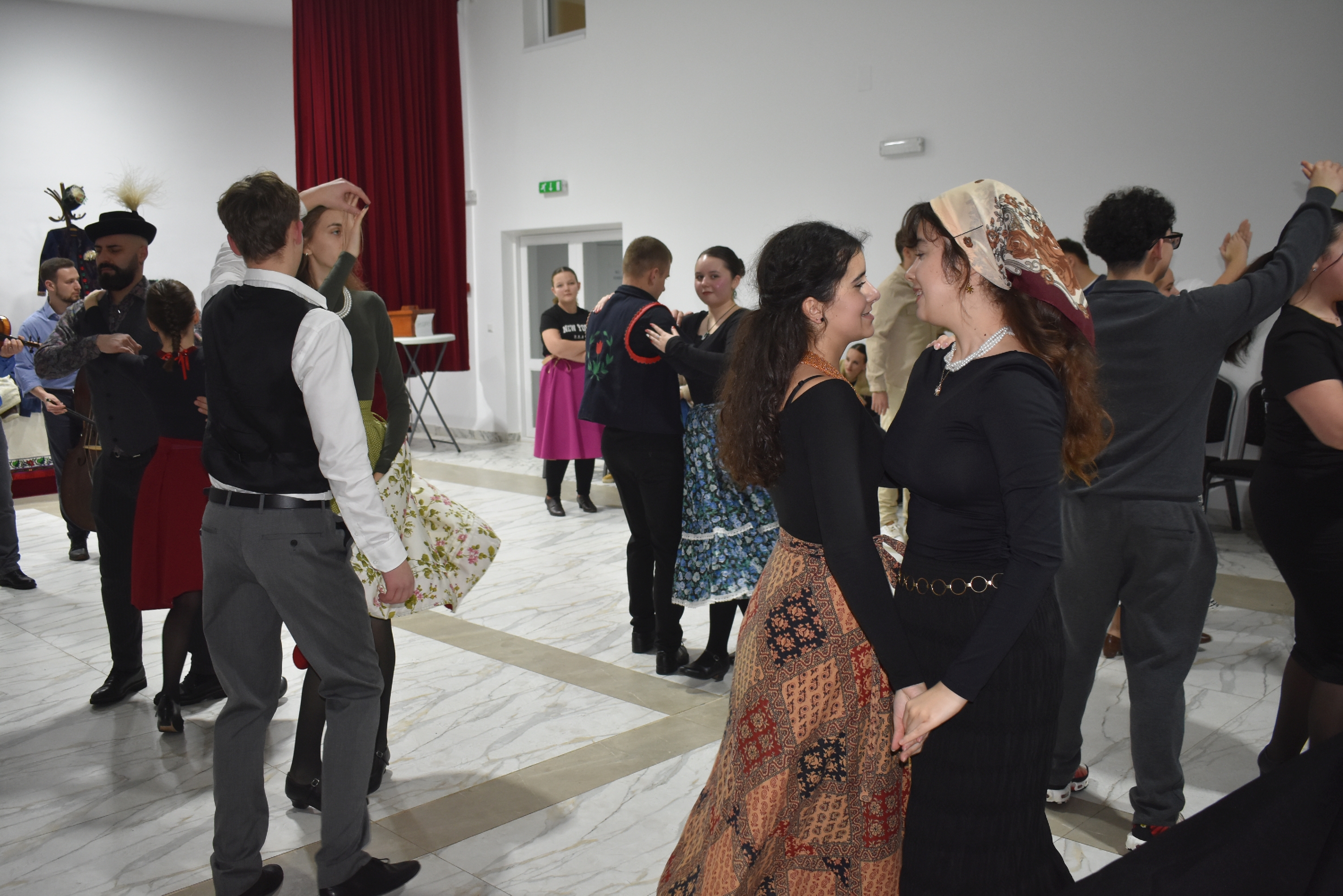 Természetesen a táncházba nem csak helyiek érkeztek, hiszen az Erdélyi Hagyományok Háza programjának egyik célja, hogy az adott településre máshonnan is jöjjenek a vendégek, táncosok – és jöttek is Börvelyből, Halmiból, Szatmárnémetiből, Pusztadarócról.