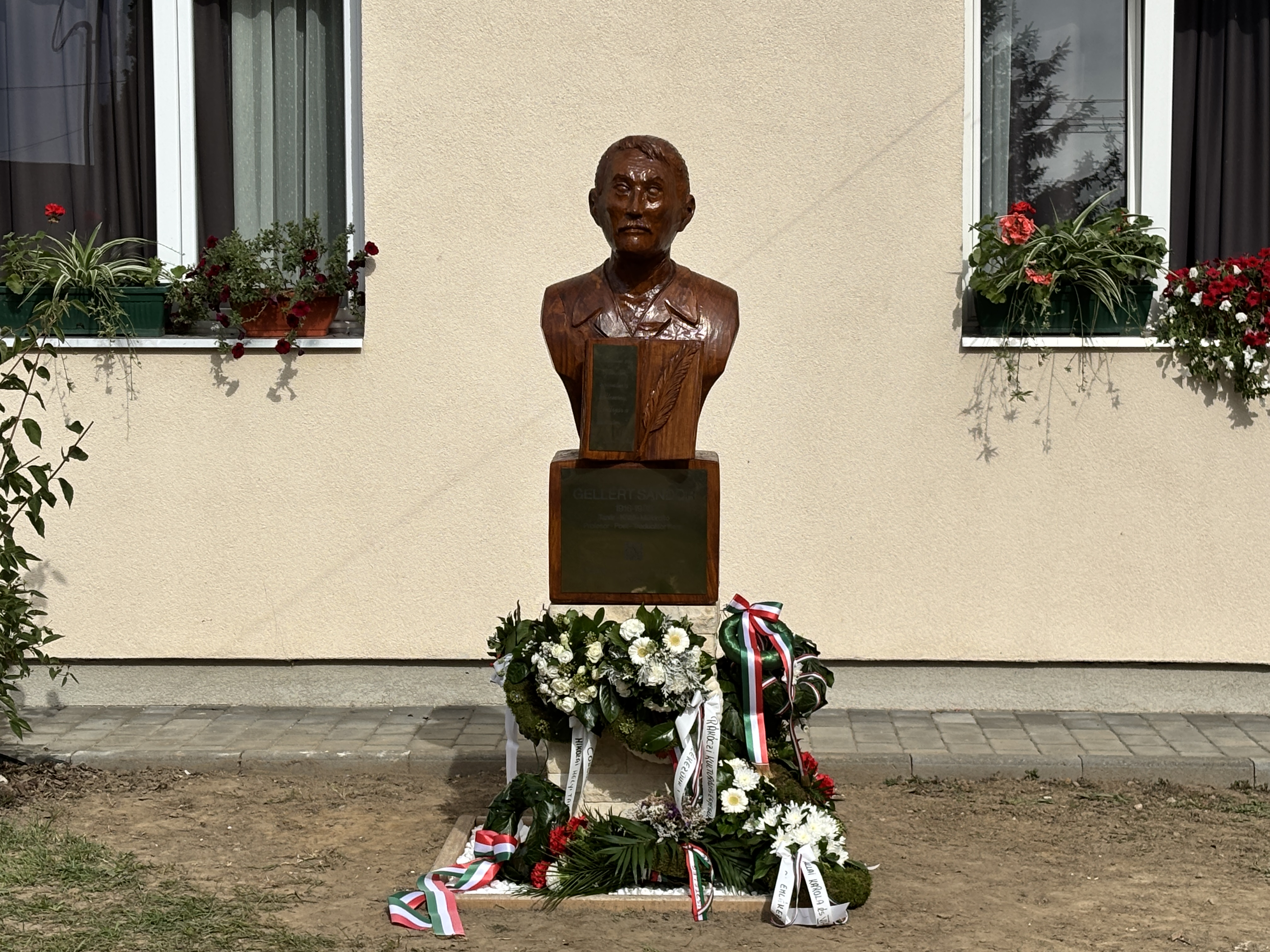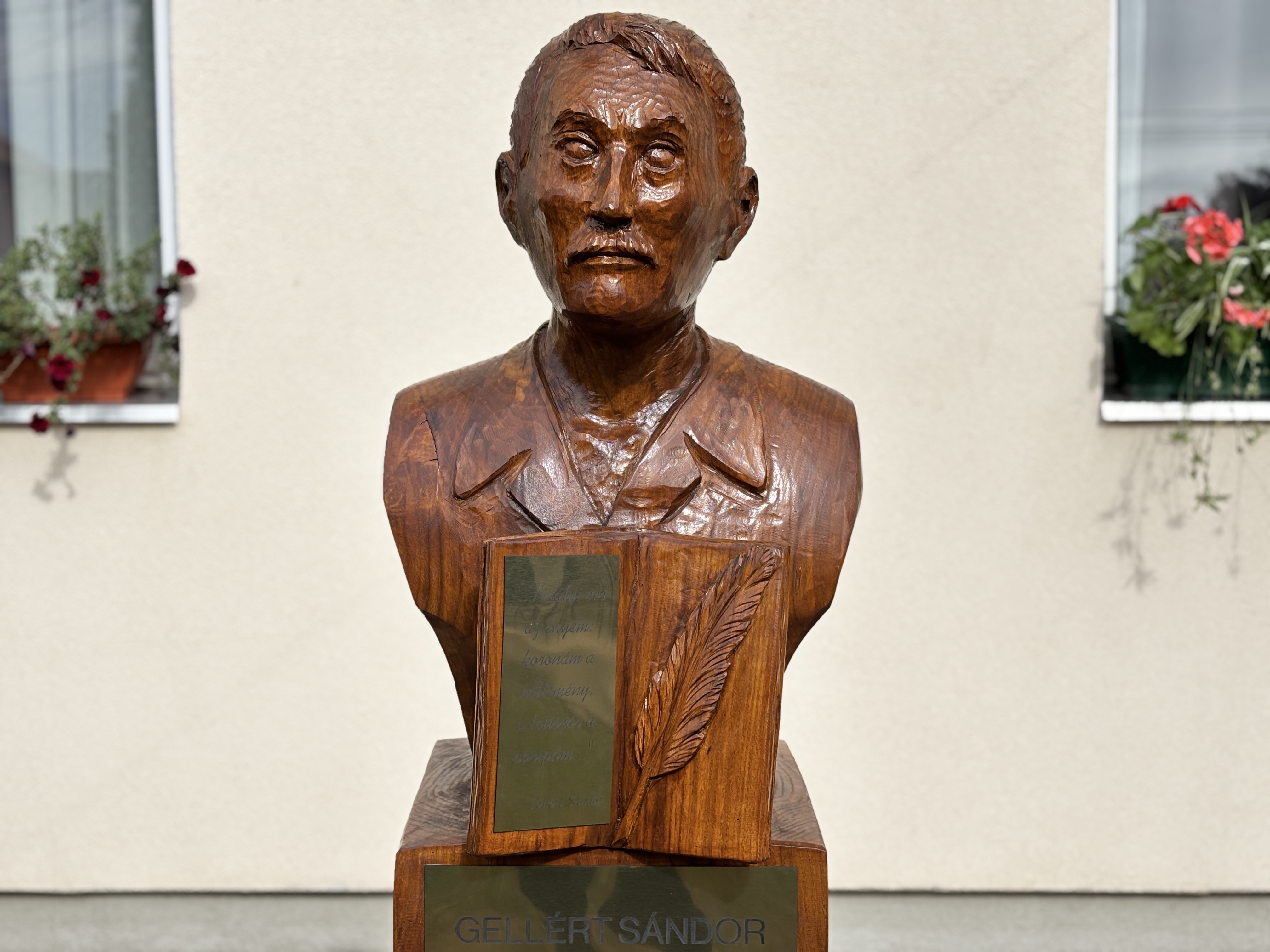 Az ünnepi gondolatokat követően került sor Gellért Sándor tölgyfa-mellszobrának megmutatására, a hófehér leplet a költő két dédunokája, Antal Dorka és Gellért Petra vonták félre a műemlékről. A szobrot Gellért Gyula tiszteletes, a költő fia áldotta meg. Az alkotás része egy nyitott könyv, amelyik egy tollat ábrázol és a költő egyik idézete szerepel ezen: „...Király vér az enyém: koronám a költemény, a tollszár a paripám.”
