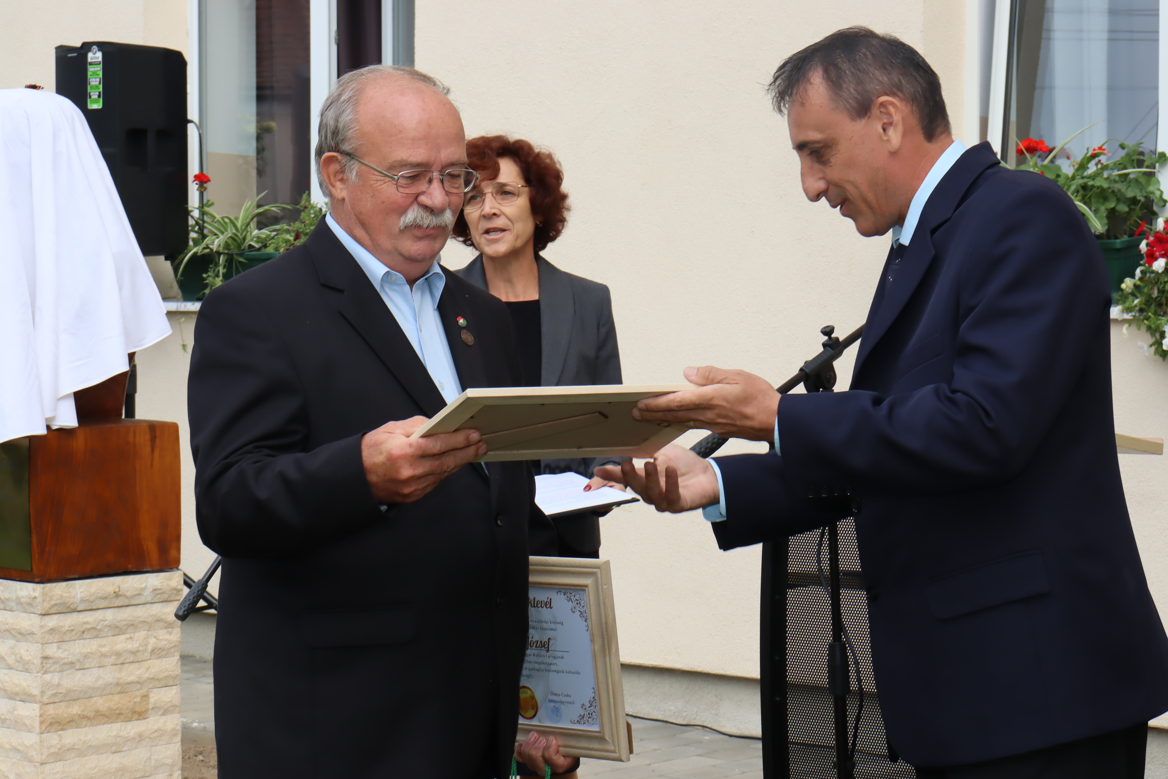Dobos Csaba iskolaigazgató köszönetet mondott mindazoknak, akik tettek azért, hogy a szobor a helyére kerülhessen. Ez a szobor egy üzenet: a múlt értékei ma is formálnak bennünket, a tegnapjaink modellezik a máinkat.