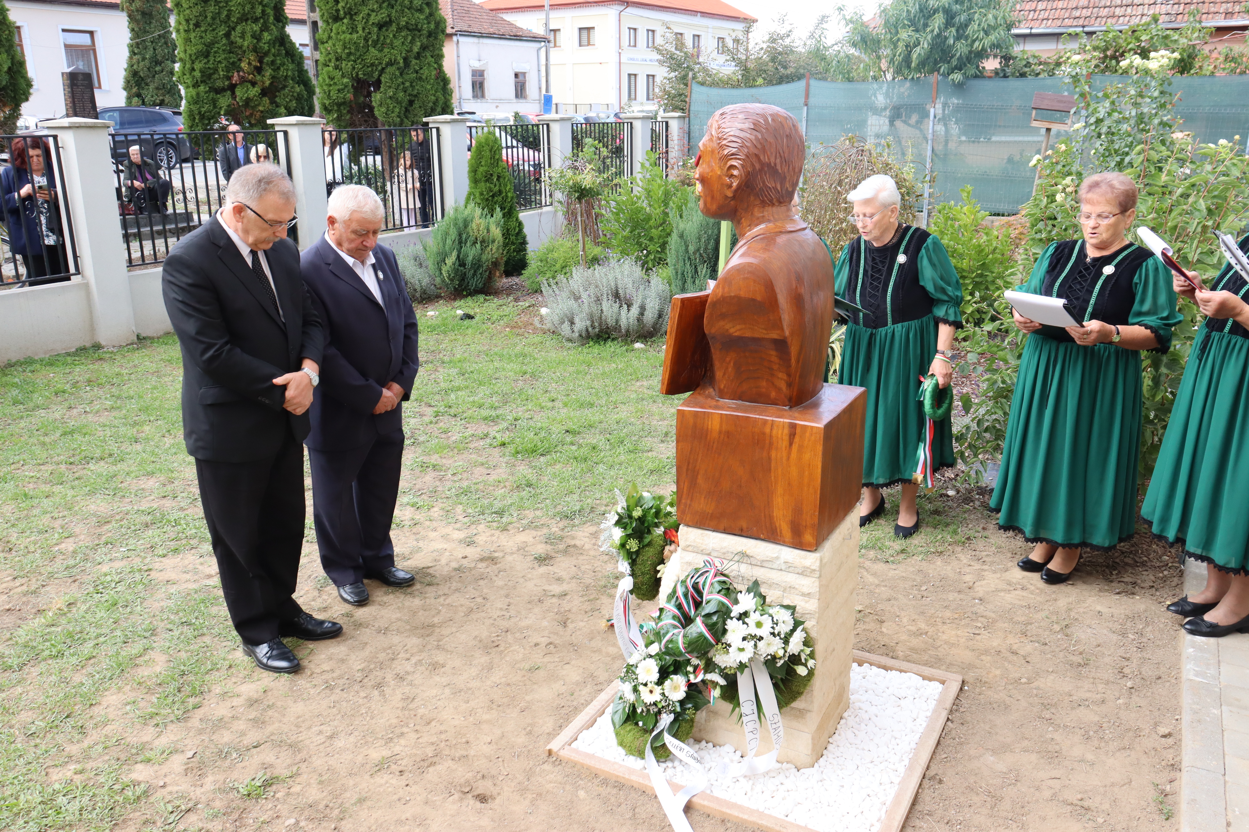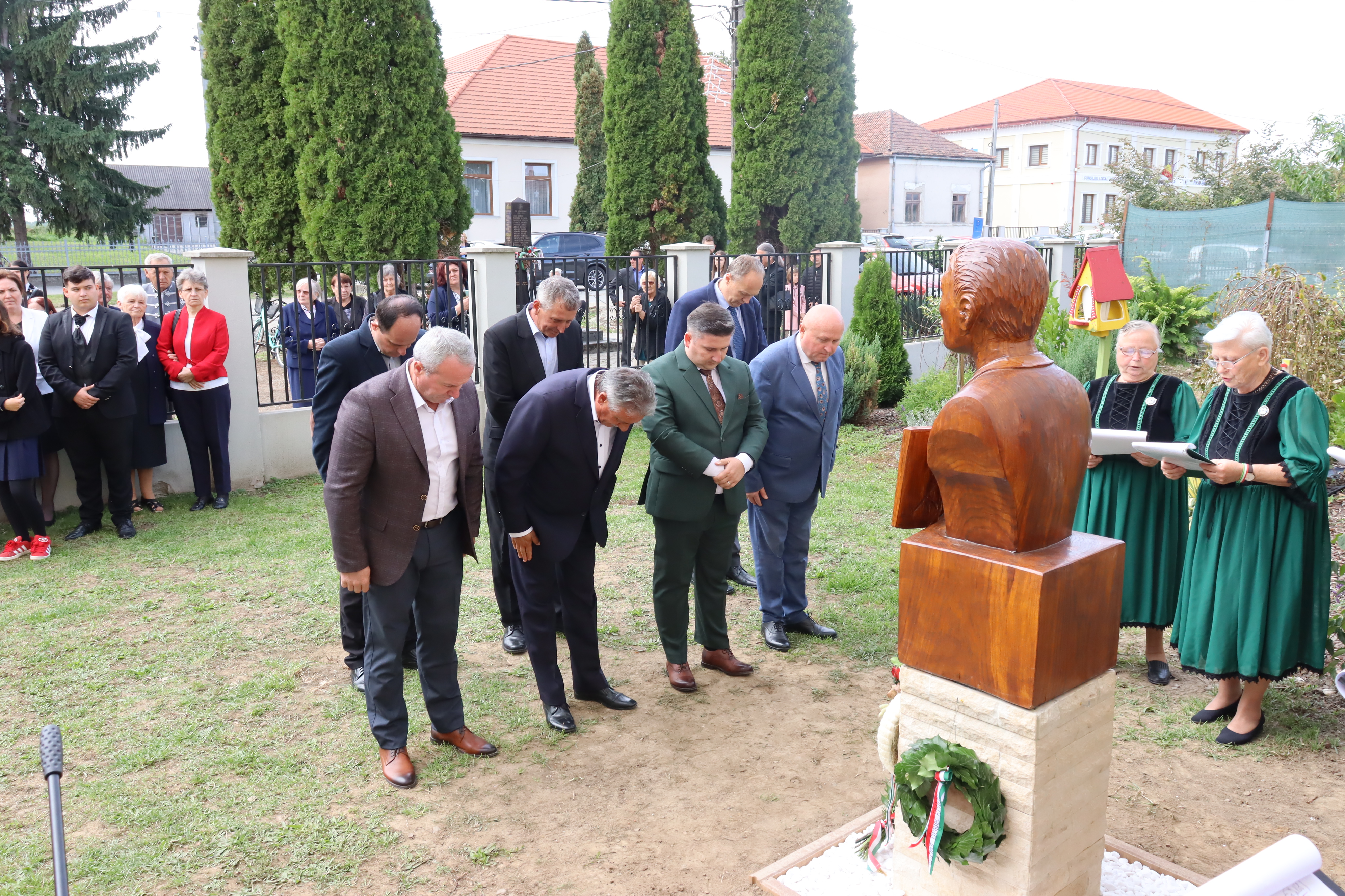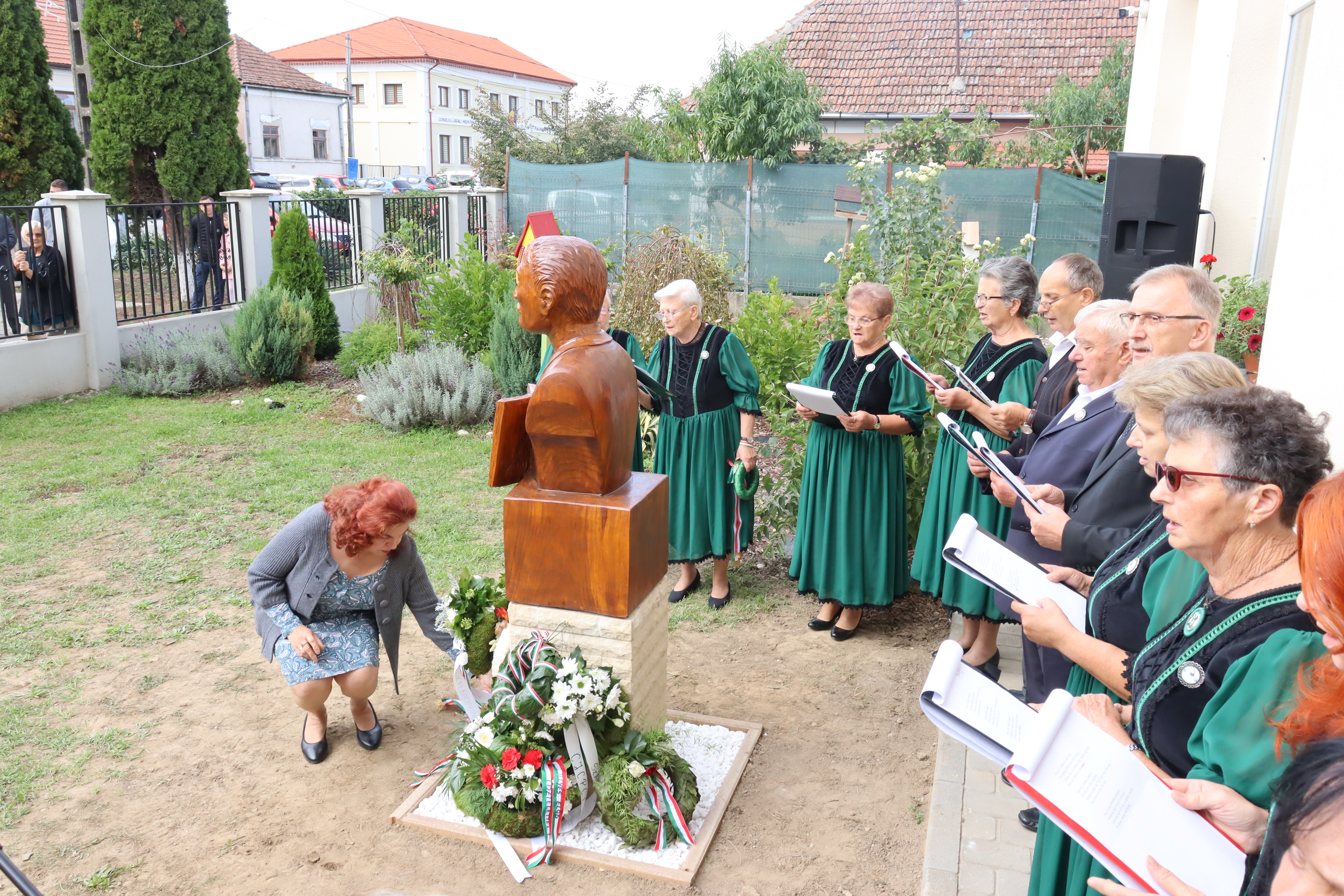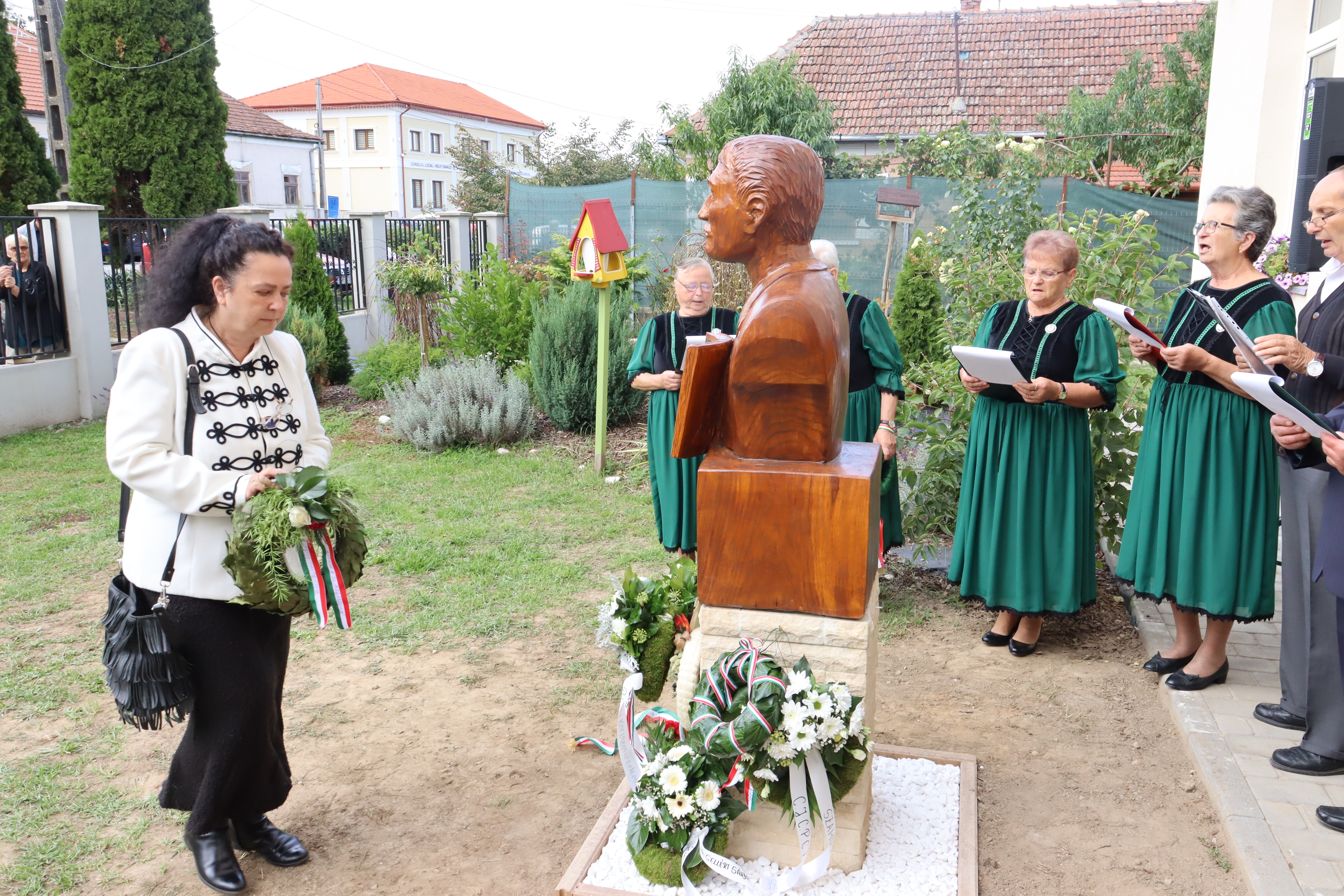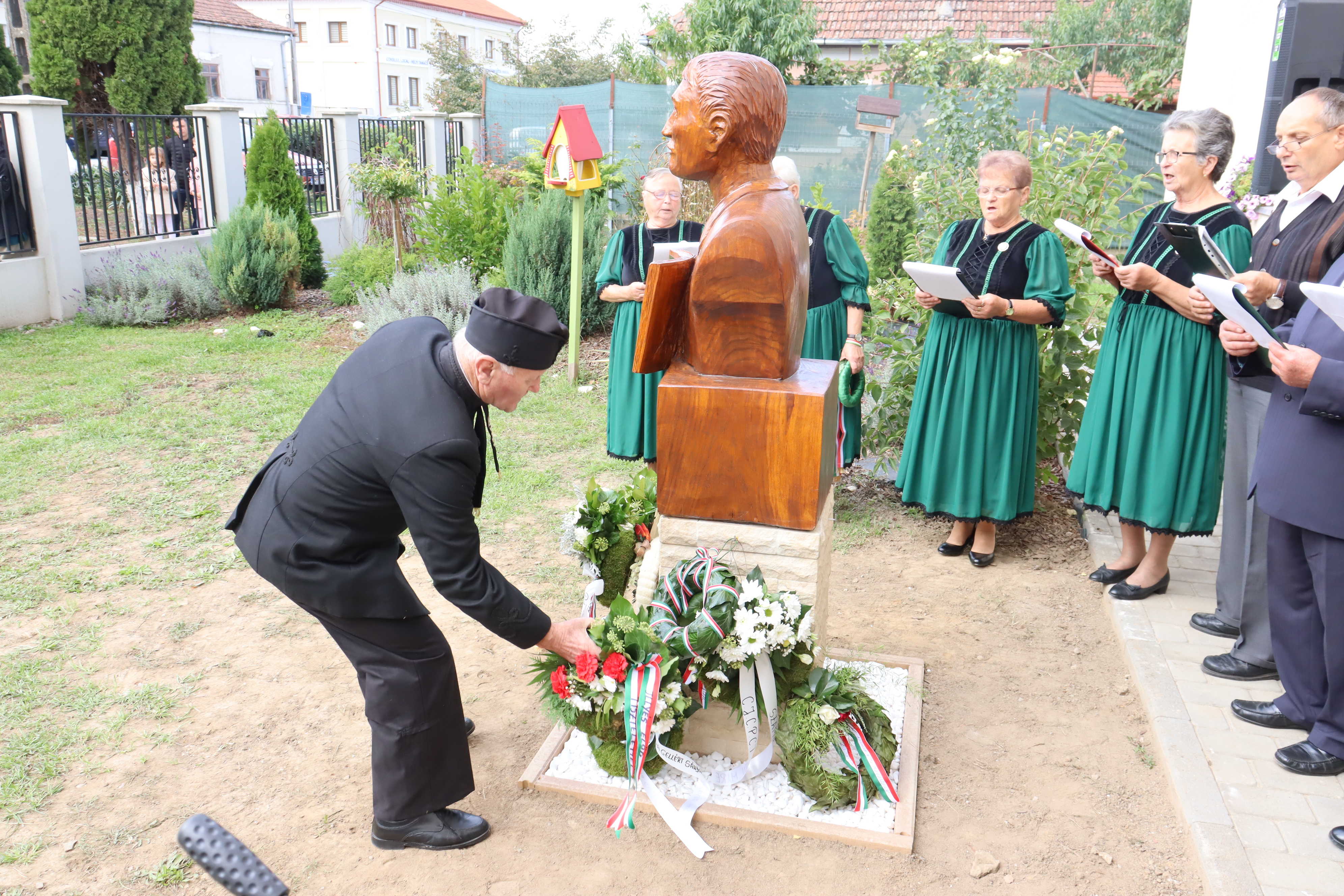 A tölgyfából készült és a Gellért Sándor Általános Iskola udvarán felállított mellszobor ünnepélyes leleplezésére a falu apraja-nagyja, Mikola és a megye elöljárósága mellett az egykori költő családja, leszármazottai is eljöttek.