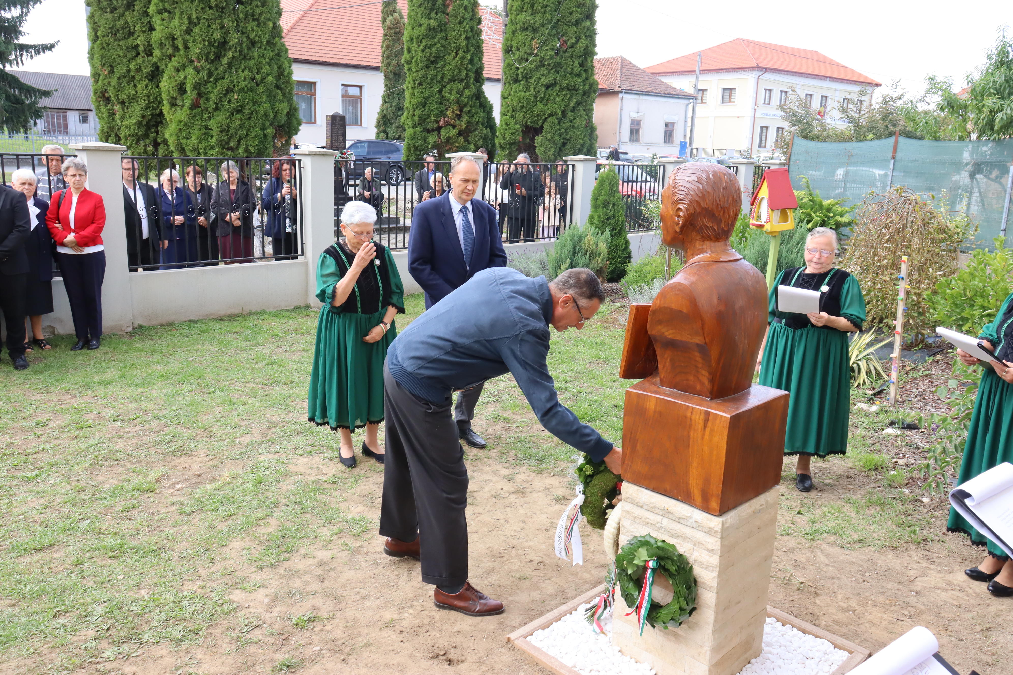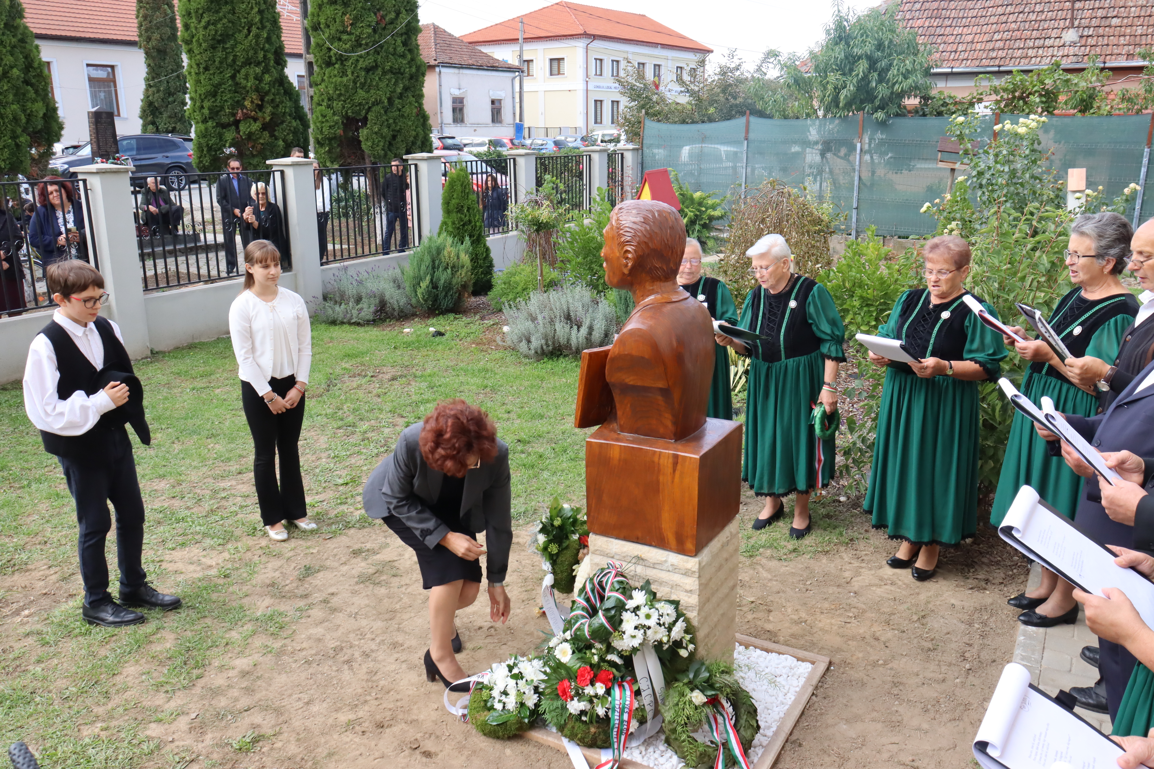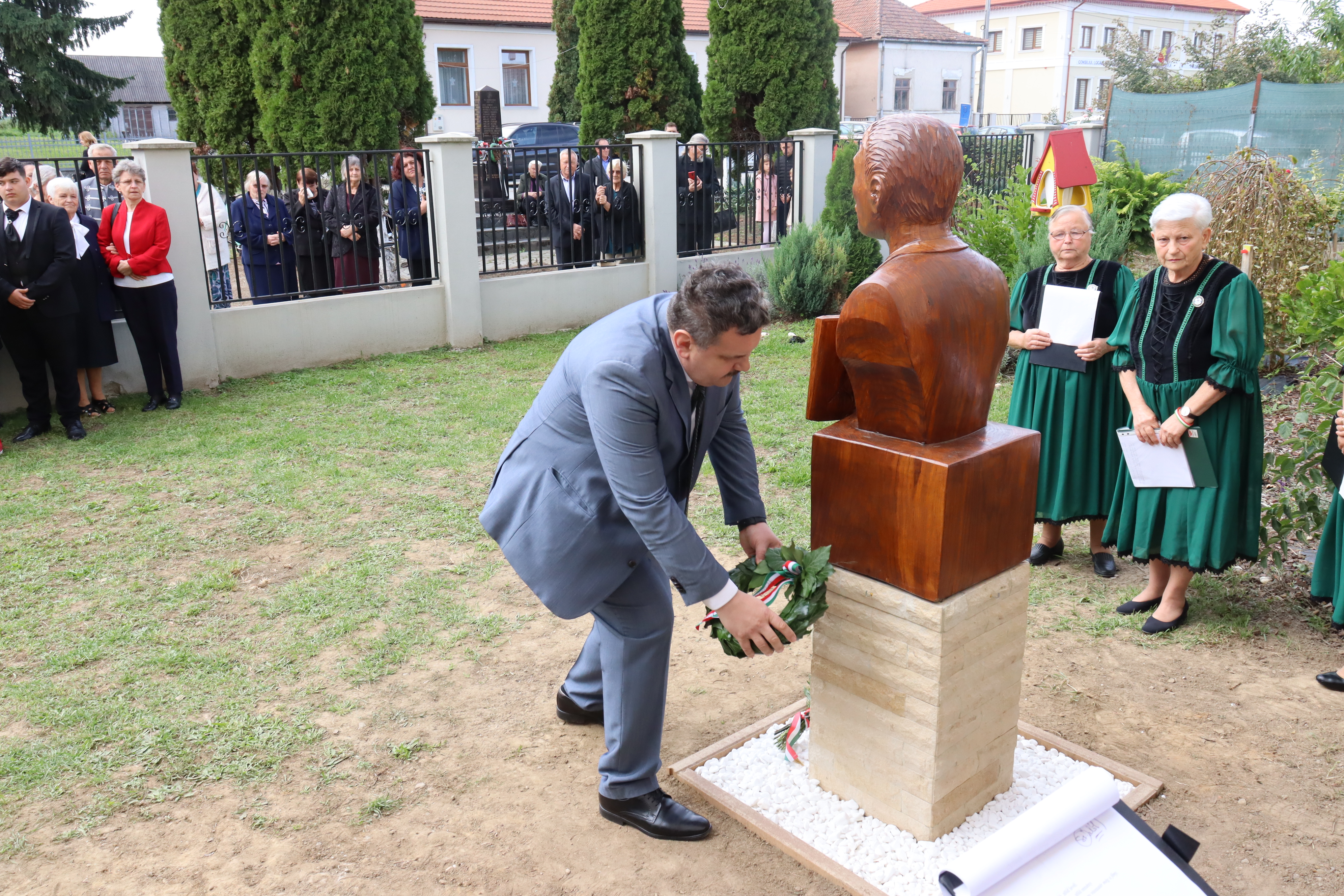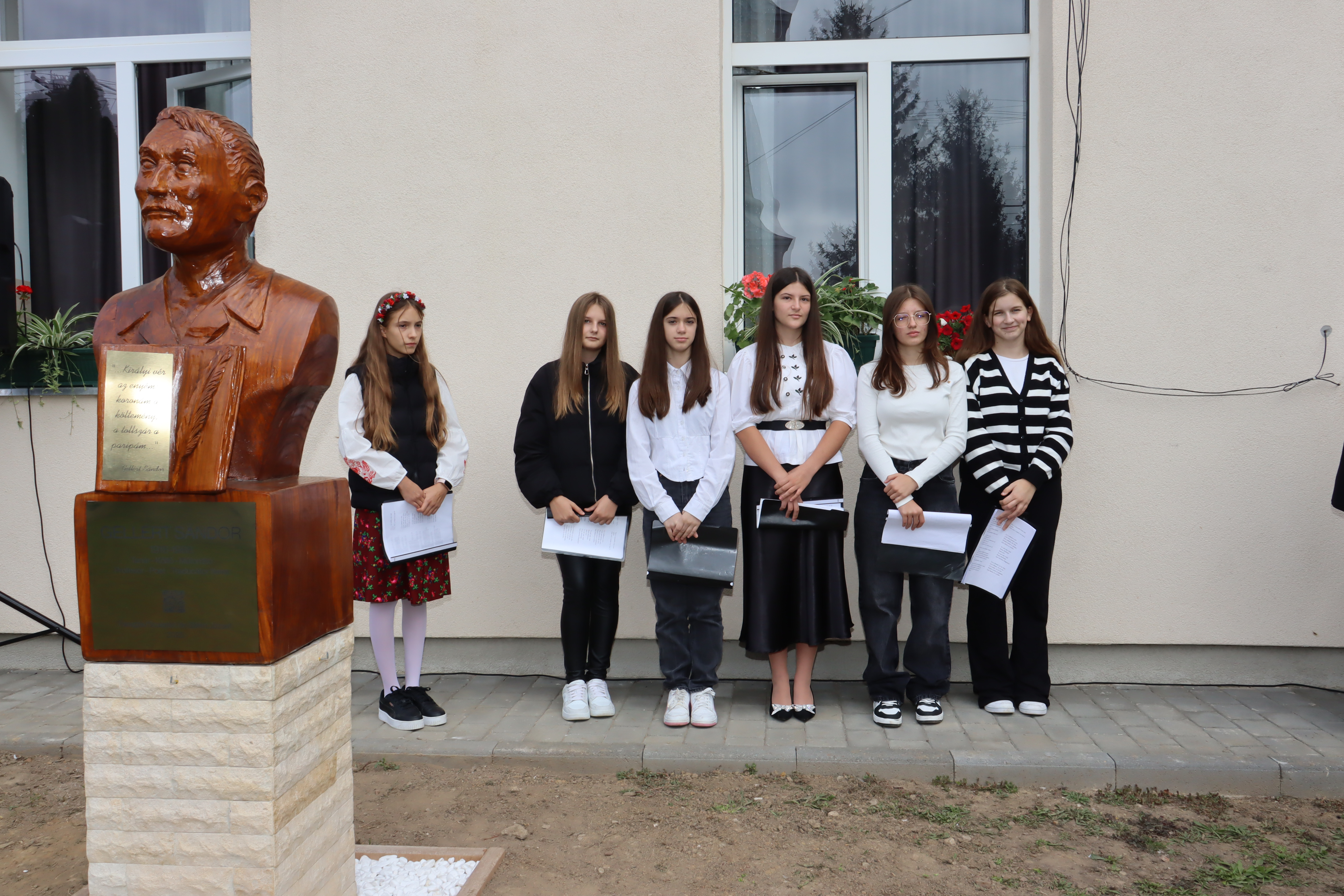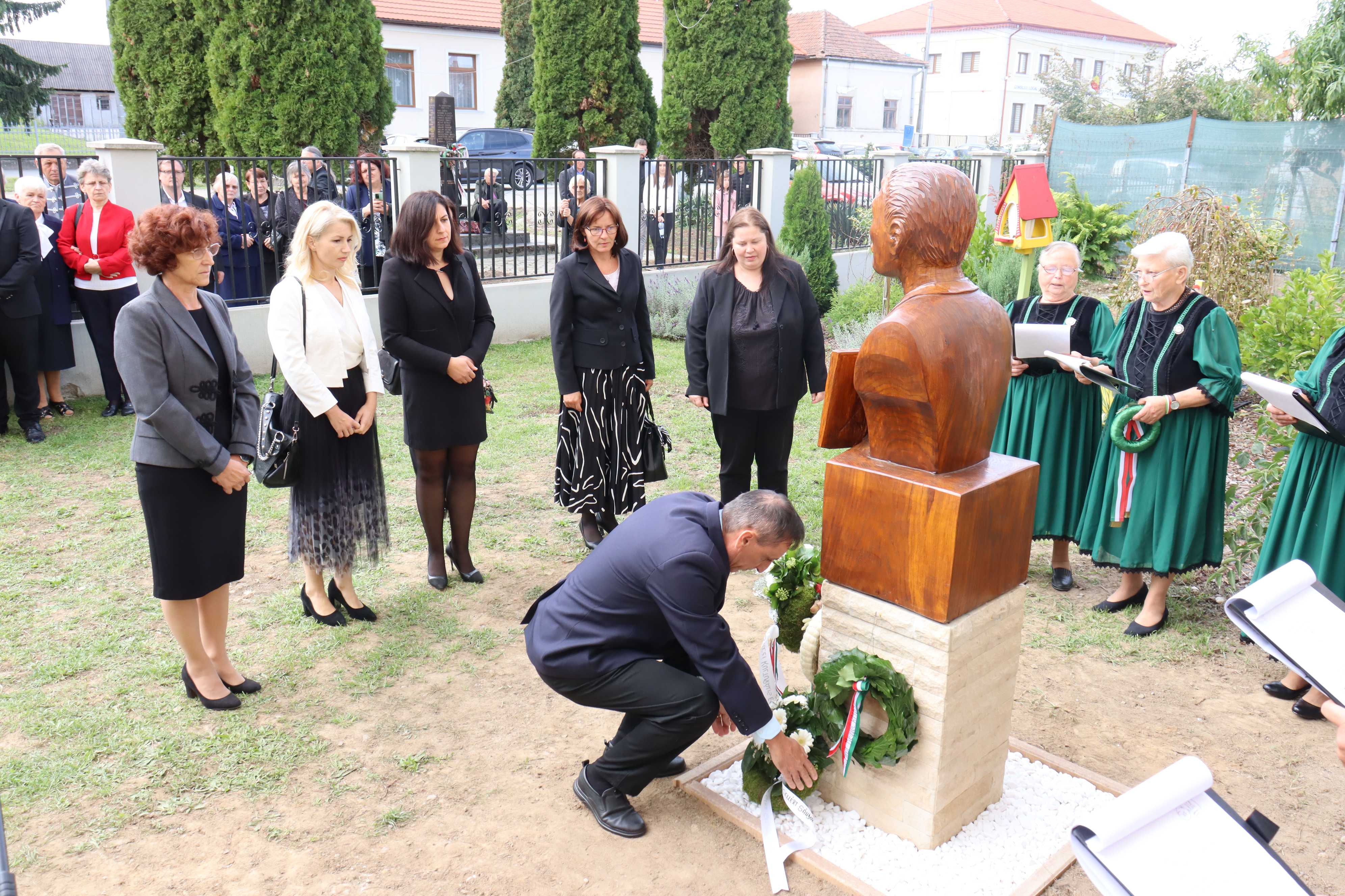 A tölgyfából készült és a Gellért Sándor Általános Iskola udvarán felállított mellszobor ünnepélyes leleplezésére a falu apraja-nagyja, Mikola és a megye elöljárósága mellett az egykori költő családja, leszármazottai is eljöttek.