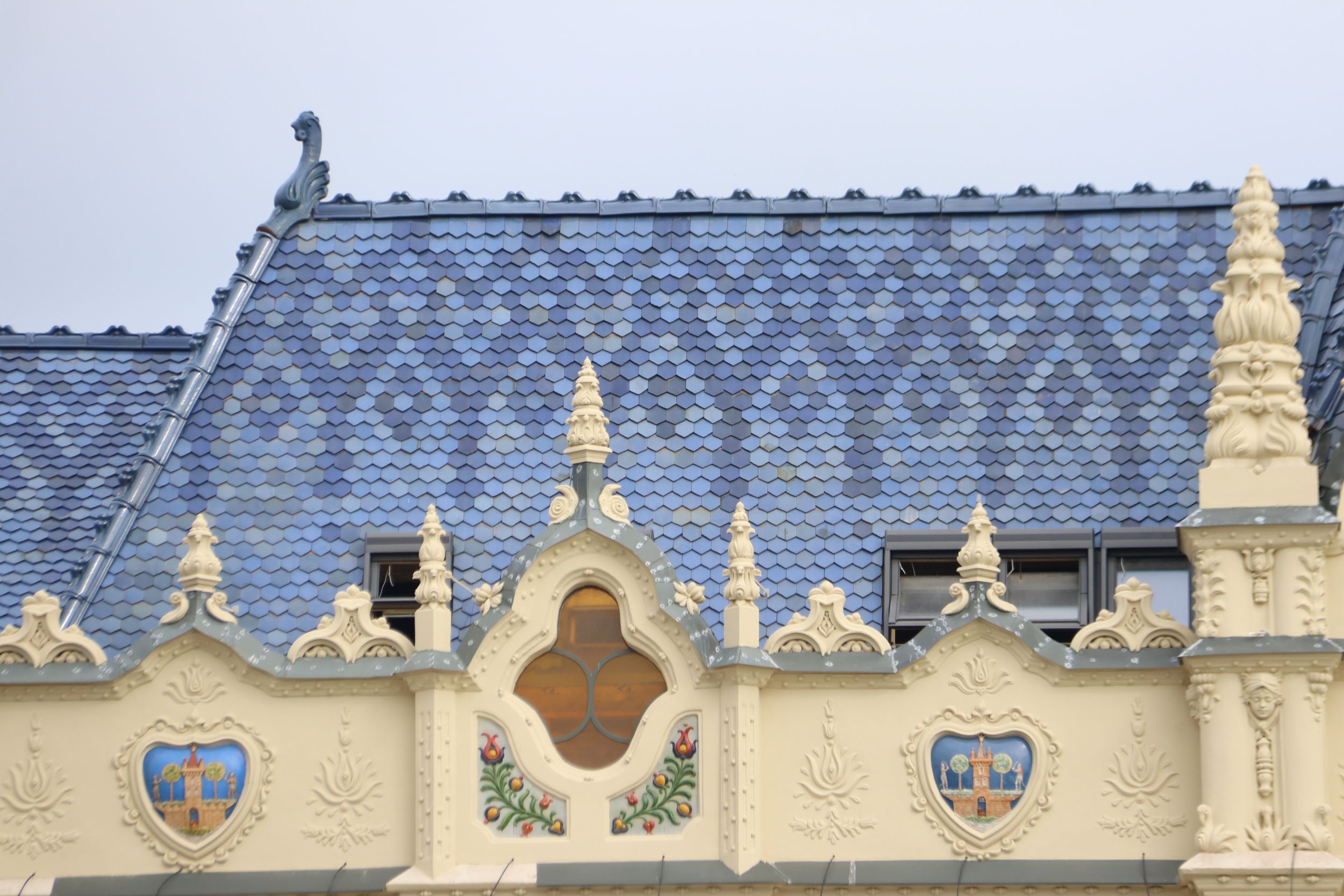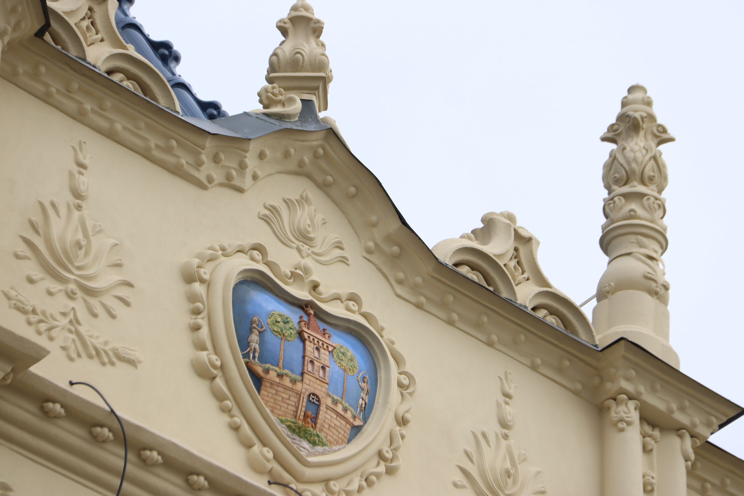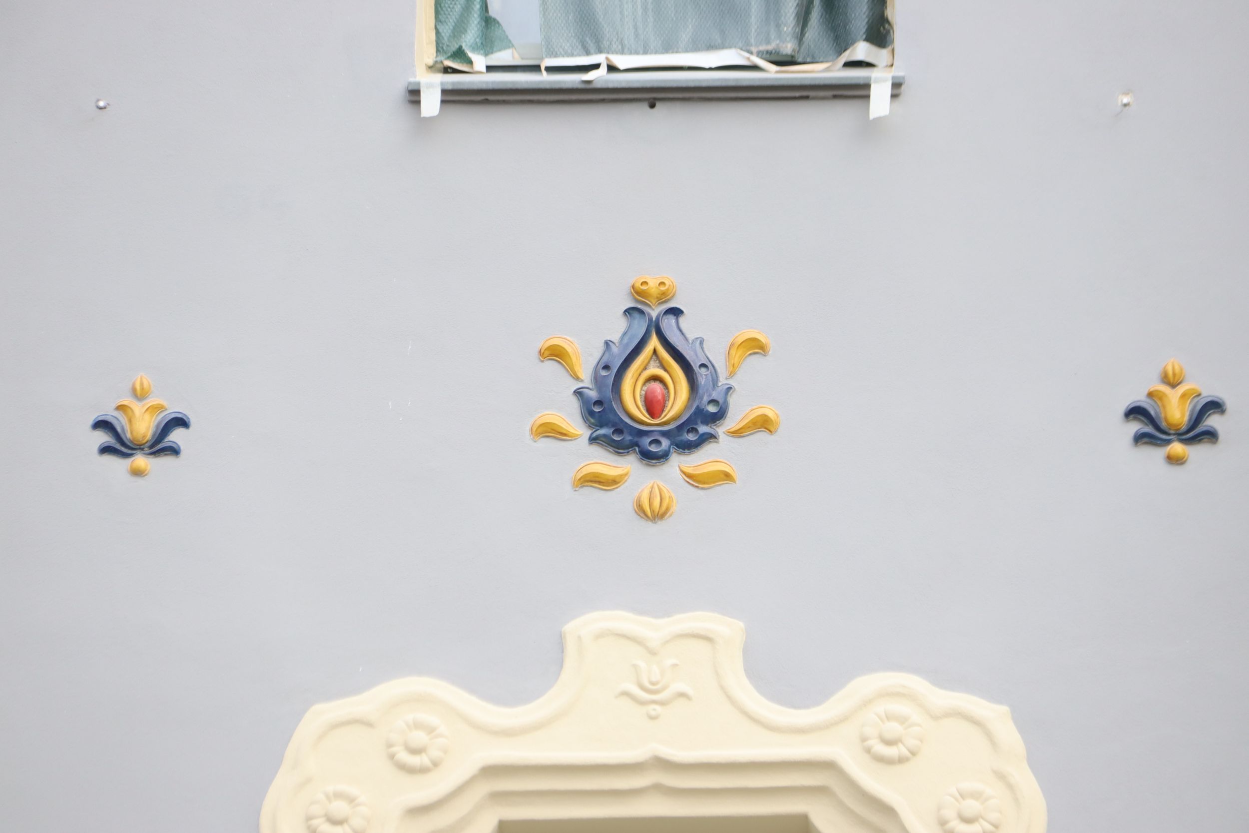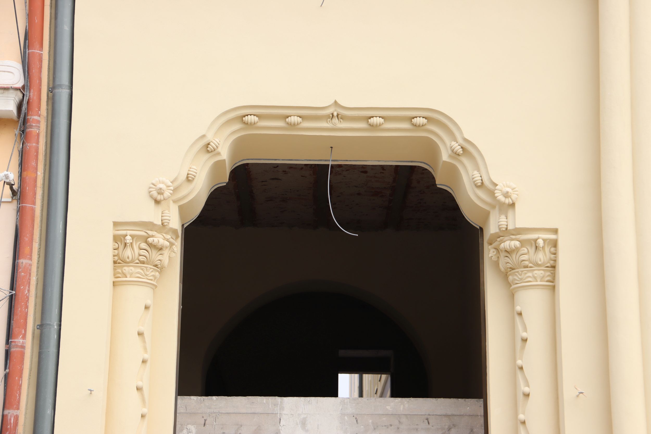 A homlokzaton egyébként annyi a dísz, mint amennyi egy barokk festményen, manapság szobafalat nem díszítenek ki annyira az emberek mint annak idején díszítettek 15 – 20 méteres magasságig is egy épületfrontot.