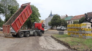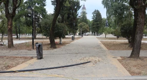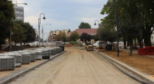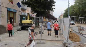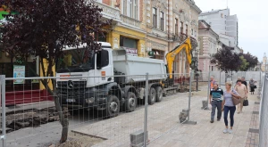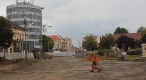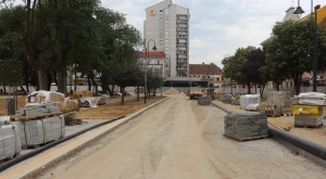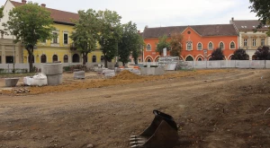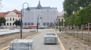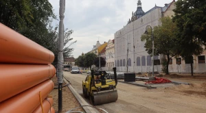 A parkon belüli munkák dandárján túl vannak az építők, nyolcvan százalékos teljesítést jelentettek szerdán — akkor is, ha ez alig látszik. Az ilyenfajta munkáknál ugyanis a föld alatt zajló fázis teszi ki a munka nagy részét; amikor már csak a burkolás, lámpatest-állítás, bútorzat-telepítés, meg zöldövezet-kialakítás van hátra gyorsan megy minden, mint a karikacsapás. A parkon kívül is hasonló a helyzet, itt már a teljes lezárt körszeleten fel van szedve a régi burkolat, az újnak a lerakása következik záros határidőn belül. Az Aurora szálloda és a Fehér Ház közötti szakaszon a végleges járdafelületre költözött át a gyalogosok főtéri surranósávja, az épületek tövében alapoznak és burkolnak, miután a közműbekötéseken túl vannak. Mikor kész ez a felület-rendezés duplájára fog nőni a gyalogút szélessége itt és zavartalan lesz a boltokba való bejárás és elkezdődik ugyanúgy a közmű-bekötés, majd a felület burkolása a Pannónia Szálló előtti főtérszakaszon, utána ugyanez a fázis következik a székesegyház előtt.