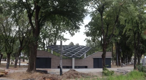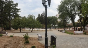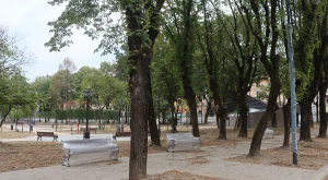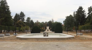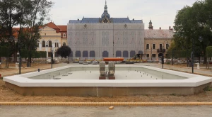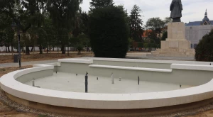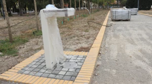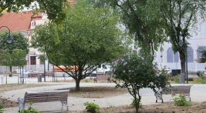 Bent a parkban már készen vannak a szökőkútmedencék, helyükön van a legtöbb lámpaoszlop, pad és kuka, a régi vízadagoló közelében már ott a lábmosóra hasonlító új, amely azért van úgy kialakítva ahogy, mivel ehhez már tolószékből is hozzá lehet férni. Egyre több felületen ott van már a burkolat a park szélén lévő körsétányon – akkor is, ha ezt még nagyrészt réskitöltő homok takarja –, nagyon kellemes színű, változatos, mégis elegáns terméskő felületen lehet majd sétálni. Készen van a régi illemhely helyén épült impozáns tetejű új illemhely is, a parkkal egy időben ezt is használni lehet majd. Ott van az ágyások alatt a park öntözőrendszere is, szeptemberben, amikor enyhül kicsit a meleg, befüvesítik a földes területeket, következik még pár díszfa, díszcserje ültetése oda ahová a kertészeti tervező azt előrelátta.