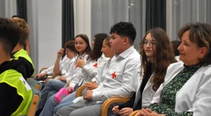 A bő kétórás rendezvény fókuszában — vagy ha úgy tetszik: reflektorfényében — a kilencedikes gólyák álltak ugyan, ám párszor átadták a képzeletbeli színpadot előbb a Röpike néptáncosainak és Magyar Dávid néptáncoktatónak, majd a Loga Dance Tánciskola versenytáncosainak: Crăciun Hannának és Bosnea Murgu Andrásnak.