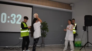 A képfelismerő–gyorsasági verseny olyan gyors ritmusban zajlott, hogy sokszor a csengő is a földön kötött ki; nem kevésbé bővelkedett izgalmakban az ingatag torony–, vagyis pompiépítés az osztálytárs hátán (persze, hogy bekötött szemmel!), s valódi kihívás volt a hajfonós tuti mix — ám a műsorvezetők belegabalyításai ellenére egy – két fiú valódi fonásnagymesternek bizonyult.