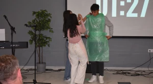 Természetesen nem maradtak el a mindig nagy sikernek örvendő táncpróbák sem, a feladatok sorát pedig a Dobd le a textilt! jelmezpróba zárta — a kihúzott lapon szereplő meghatározásnak megfelelően szelektív, újrahasznosítható dolgokból kellett különböző ruhadarabokat alkotni, minél rövidebb idő alatt.