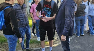 Plakátragasztás közben egy arra járó diákcsapat — némi pusmogás és egymás bátorítása után — lépett a polgármesterhez, természetesen azonnal szelfit is készítettek vele s rövid beszélgetésbe elegyedve pár kérdést is feltettek neki.