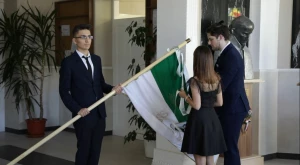 A ballagási ceremóniából egyetlen diák sem maradt ki: jelképesen mindenki részt vett a búcsún, a tanulók ugyanis készítettek egy szalagot, melyre minden maturandus neve felkerült, ezzel pedig felszalagozták az iskola zászlaját.