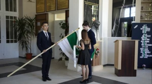 A ballagási ceremóniából egyetlen diák sem maradt ki: jelképesen mindenki részt vett a búcsún, a tanulók ugyanis készítettek egy szalagot, melyre minden maturandus neve felkerült, ezzel pedig felszalagozták az iskola zászlaját.