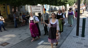 Lesz még egy népviseletes, rézfúvósok által vezetett felvonulás vasárnap is, akkor a Kálvánira templom-beli német nyelvű mise után fognak, 11:15 óra tájban a Vasile Lucaciu utcai svábházhoz vonulni az ünneplők.