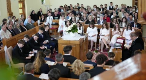 Vasárnap reggel a Deák Ferenc-téri parkból vonultak be az ifjak, énekelve: „Vezess Jézusunk, véled indulunk…” Rácz Ervin lelkipásztor köszöntötte a híveket és a Rómabeliekhez írott levél magyarázatáról szóló igehirdetés-sorozat 34. részéhez érkezett, amely személyre szabottan szólt a konfirmandusokhoz.