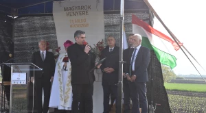 Varga Sándor színművész Dsida Jenő Psalmus Hungaricus egyik részletének szavalását követően dr. Semjén Zsolt, Magyarország miniszterelnök-helyettese, és a rendezvény fővédnöke lépett mikrofon elé. Mint hangsúlyozta, a Magyarok kenyere ünnep, a búza- és kenyérszentelés ünnepe a magyar nemzet egységéről szól időben és térben, hiszen mindannyian tagjai vagyunk az örök magyarságnak. „A búza is, bárhol termett is a Kárpát-medencében, ha összegyűjtjük, a 15 millió szem egyetlen kenyeret fog kiadni. És bárhol teremjen is a 15 millió búzaszem, ha kenyér lesz belőle, már nem lehet szétválasztani, hogy melyik szem honnan került bele.” – mondta, hozzátéve: a különböző magyarlakta területeken termett búzaszemekből készült kenyér jól szimbolizálja a magyar nemzet egységét. „Ez a búzaszentelés is megerősít abba, hogy az egy magyar nemzetnek a tagja vagyunk, megerősít bennünket a nemzethűségünkben, s abban: hűséges tagjai vagyunk az örök magyarságnak“