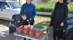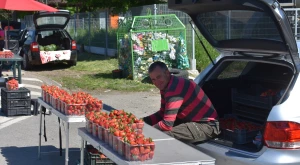 Az ilyenkor szokásos, enyhe közlekedési káosz és kisebb dugó övezi a halmi „forduló” előtti parkolót és környékét, ahol egymás mellett, sorban állnak az epres-asztalkák s a csábító pirosan csillogó gyümölcsök csalogatásának csak kevesen tudnak ellenállni. Az autókból kiszálló vásárlók végigjárva a „sort” mustrálják az Újmikolából, Túrterebestelepről, Túrterebesről és természetesen Halmiból érkezett árut, számolgatják az árát (25 lej egy kosárka) és szemlélik-szagolják a gyümölcsöt: melyik érettebb, szebb, illatosabb, nagyobb — a kosárkákban, mint ahogy az árusok autóinak csomagtartóit megtöltő ládákban is most még zömében Asia-fajta kelleti magát, ugyanis az Albahoz hasonlóan koraérő fajta, hatalmas szemei igencsak mutatósak és az íze is aromás-finom, s a kínált portékát (egy kivétellel) nem fóliasátorban, hanem már a szabad földről szüretelték.