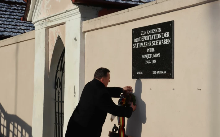 A beszédek után a résztvevők megkoszorúzták az 1945-ben a Szovjetunióba deportált svábok emléktábláját, magyarul és németül imádkoztak a kényszermunkatáborokban szenvedtek és odavesztek lelki üdvéért.