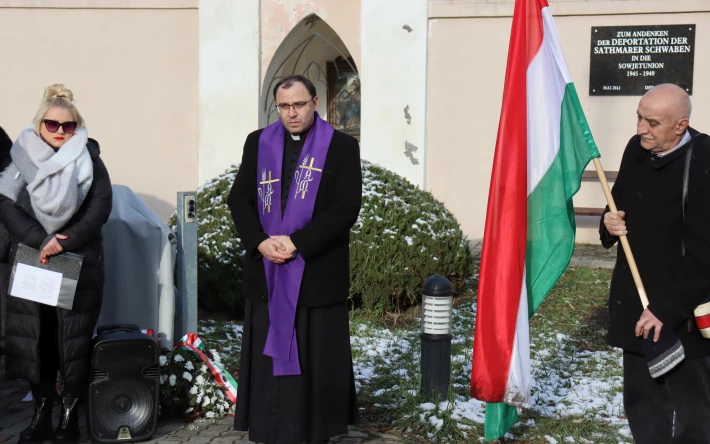 Fánea József plébános arról beszélt, hogy az emlékezés nem elég, merjünk egymásra testvérként tekinteni és osszuk meg a szeretetet, mert csak így lehet gátat szabni az olyan borzalmaknak mint amilyenek nyolcvan éve történtek a szatmári sváb közösségekben.