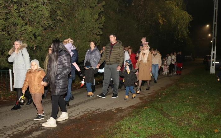 A szülőkkel és pedagógusokkal a közös, nagy munka után, a lázári tűzoltóautó felvezetésével és rendőrautó kíséretében a villogó szirénák és a lámpások fényében vonult végig a több mint 120 gyerek és felnőtt a községközpont főutcáján, Márton-napi nótákkal az ajkukon.