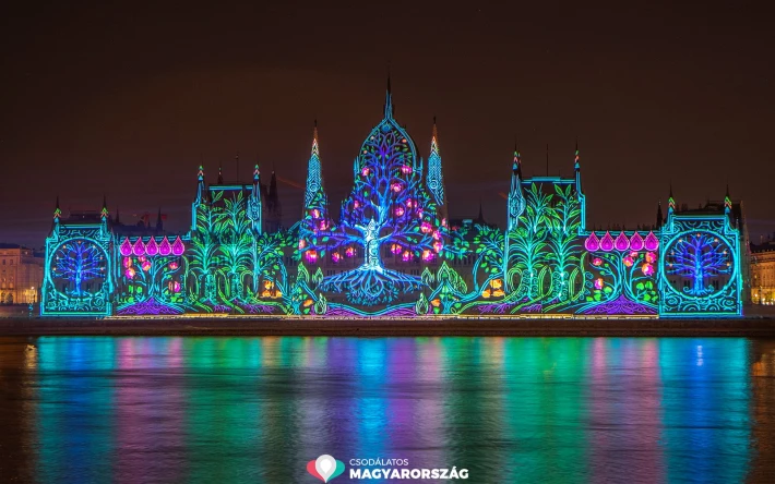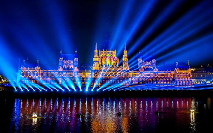 Az Országház előtti Duna-parton öt kilométer hosszúságú látványtér volt, több mint 45 ezer pirotechnikai effekt amit „elképesztő fényjáték” tetézett a folyó felett.