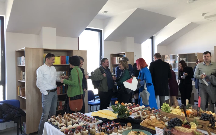 Az átadó az épület emeleti könyvtárában szervezett jó hangulatú állófogadással ért véget.