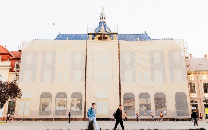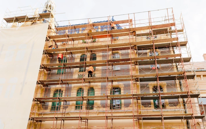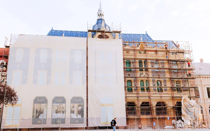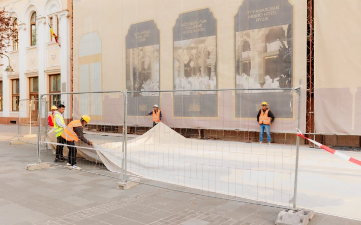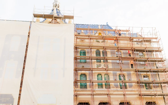 Szerda reggel elkezdték visszabontani a szatmárnémeti egykori Pannónia, majd Dacia, illetve hamarosan Hotel Indigo nevet viselő patinás műemléképület homlokzatát borító molinót és az állványzatot.